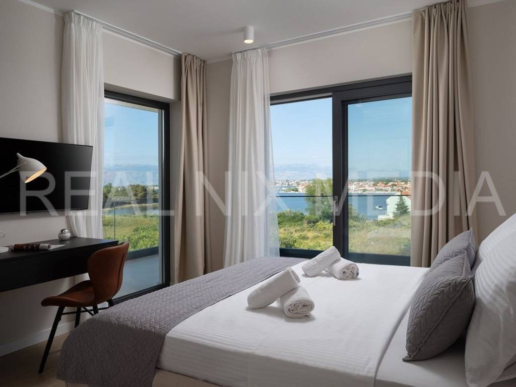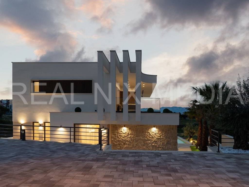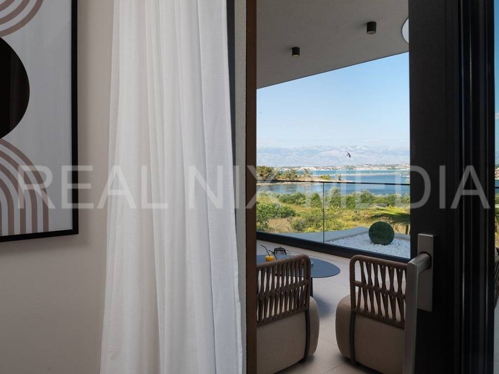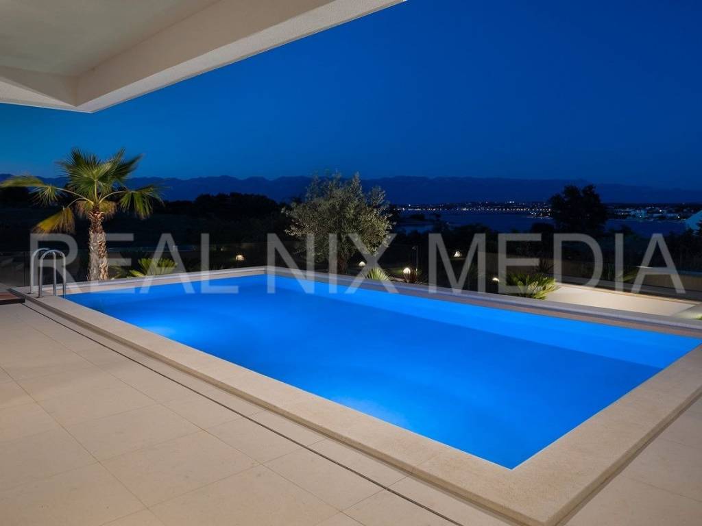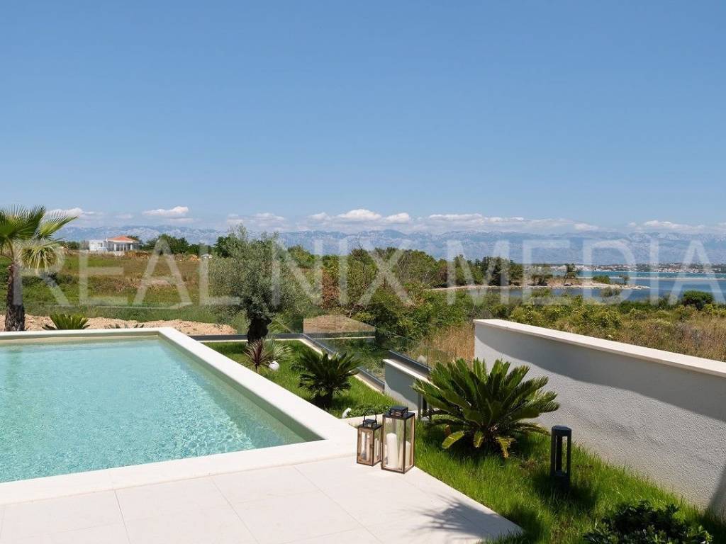 Prodaje se iznimno luksuzna i unikatna vila u prvom hrvatskom kraljevskom gradu Ninu. Vila je smještena na blago povišenoj lokaciji koja stanarima osigurava neometan, direktan pogled na more. Vila se sastoji od dvije etaže. U prizemlju se nalazi velika kuhinja, blagovaonica, otvoreni dnevni boravak, spavaća soba, kupaonicom i spremište. Na katu su smještene 3 spavaće sobe svaka sa vlastitom kupaonicom, garderoba i praonica rublja. Sve prostorije su prostrane i imaju velike staklene stijene koje osiguravaju veliku količinu prirodne svjetlosti i pogled na more i prirodu. Cijeli prostor je klimatiziran. Građevinski radovi su izvođeni prema najvišim standardima moderne gradnje. Pri samom projektiranju, a i tijekom gradnje, posebno se pazilo da se osim estetskih, zadovolje i svi funkcionalni elementi svakodnevnog stanovanja.