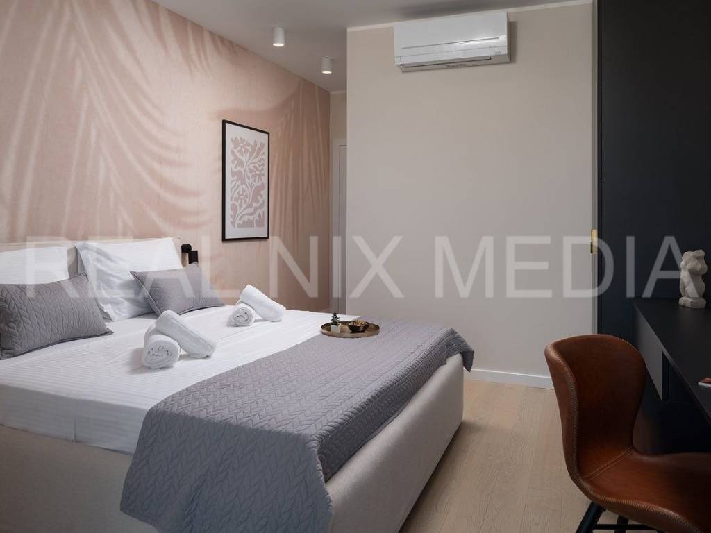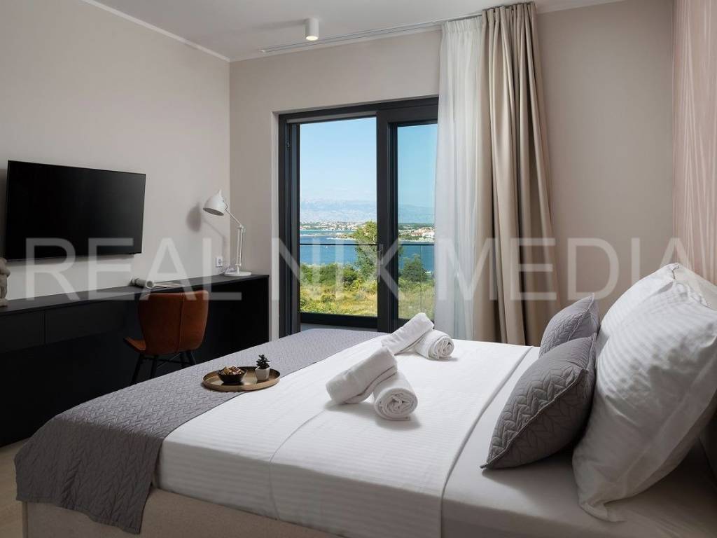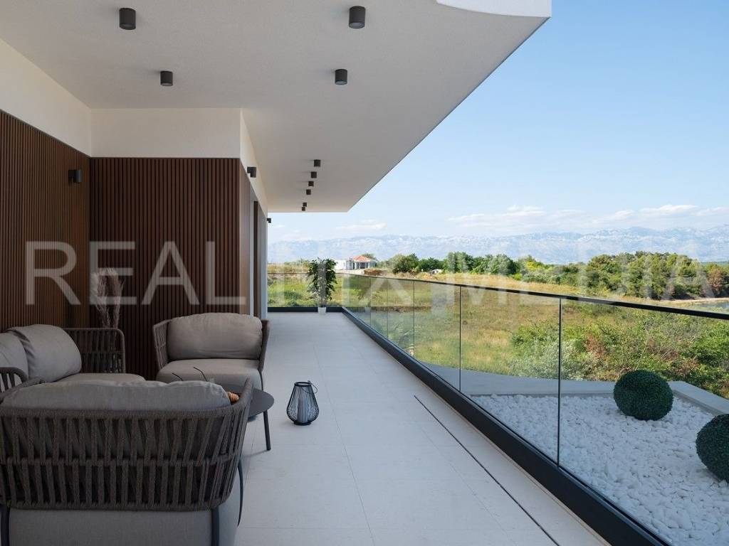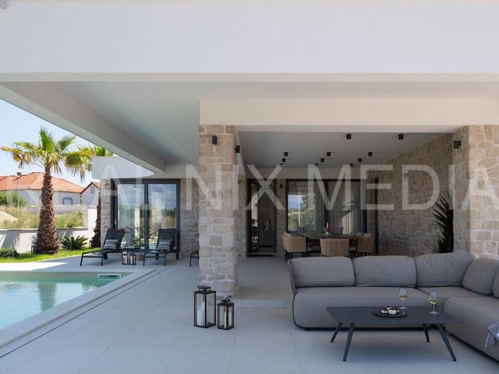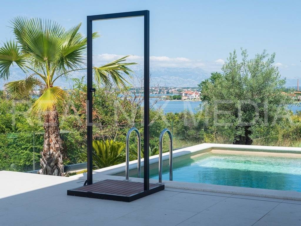 Prodaje se iznimno luksuzna i unikatna vila u prvom hrvatskom kraljevskom gradu Ninu. Vila je smještena na blago povišenoj lokaciji koja stanarima osigurava neometan, direktan pogled na more. Vila se sastoji od dvije etaže. U prizemlju se nalazi velika kuhinja, blagovaonica, otvoreni dnevni boravak, spavaća soba, kupaonicom i spremište. Na katu su smještene 3 spavaće sobe svaka sa vlastitom kupaonicom, garderoba i praonica rublja. Sve prostorije su prostrane i imaju velike staklene stijene koje osiguravaju veliku količinu prirodne svjetlosti i pogled na more i prirodu. Cijeli prostor je klimatiziran. Građevinski radovi su izvođeni prema najvišim standardima moderne gradnje. Pri samom projektiranju, a i tijekom gradnje, posebno se pazilo da se osim estetskih, zadovolje i svi funkcionalni elementi svakodnevnog stanovanja.