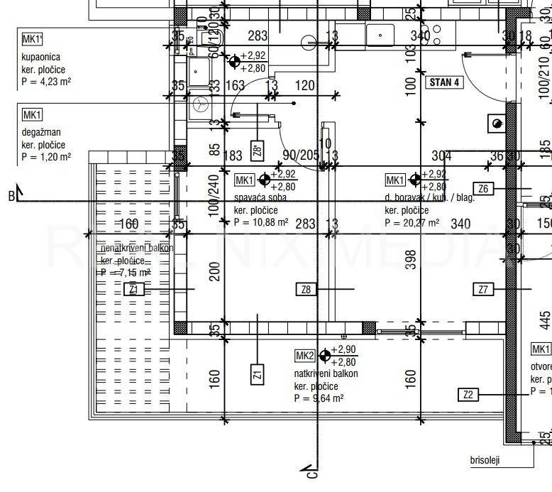 Stan oznake S4 nalazi se na prvom katu zgrade te se sastoji od kuhinje, blagovaonice i dnevnog boravaka, dvije natkrivene terase, predsoblja, kupaonice te jedne spavaće sobe. Stanu pripada jedno vanjsko parkirno mjesto.