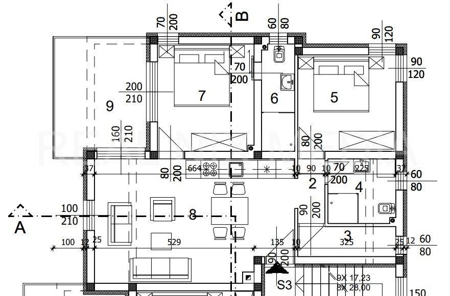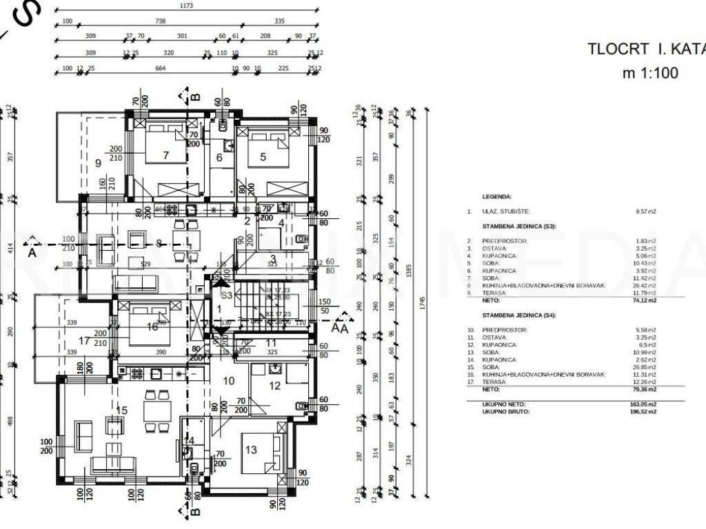 Stan oznake S3 nalazi se ma prvom katu zgrade. Stan neto korisne površine 74,12 m2 koji se sastoji od kuhinje, blagovaonice i dnevnog boravka sa izlazom na terasu, predsoblja, dvije spavaće sobe, dvije kupaonice te ostave.