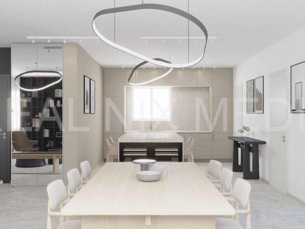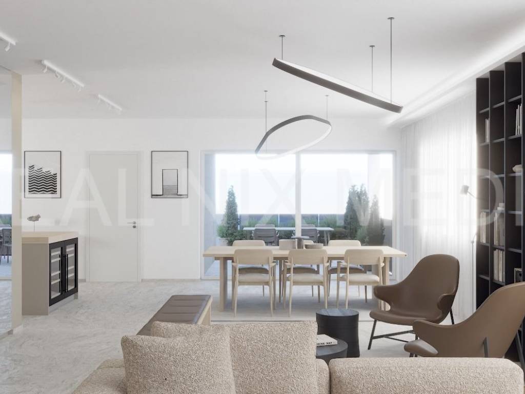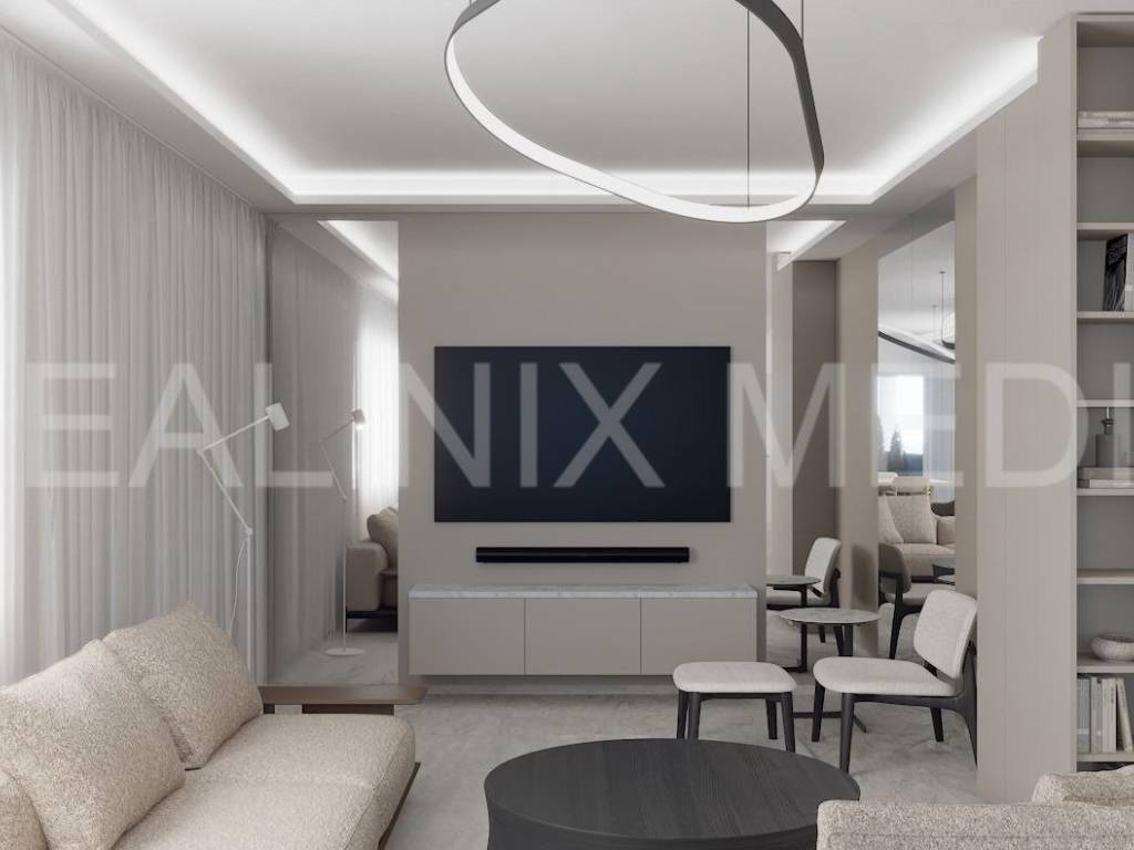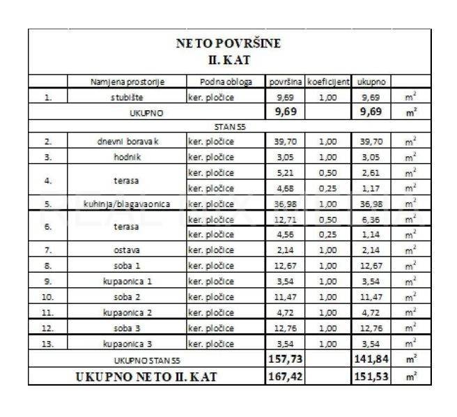 S5 - cijeli drugi kat zgrade zauzima penthouse površine 142 m2 iz kojeg se pruža prekrasan panoramski pogled na more! Stan se sastoji od komforne kuhinje, blagovaonice i dnevnog boravka sa izlazom na terasu na kojoj se nalazi jacuzzi, hodnika, tri spavaće sobe, tri kupaonice, dvije spavaće sobe imaju svoju vlastitu kupaonicu te jedna spavaća soba ima izlaz na vlastiti balkon; ostava. Cijena: 589.000,00 EUR-a. Stan se prodaje kompletno namješten!