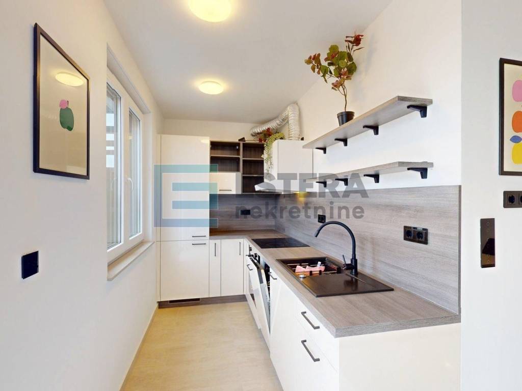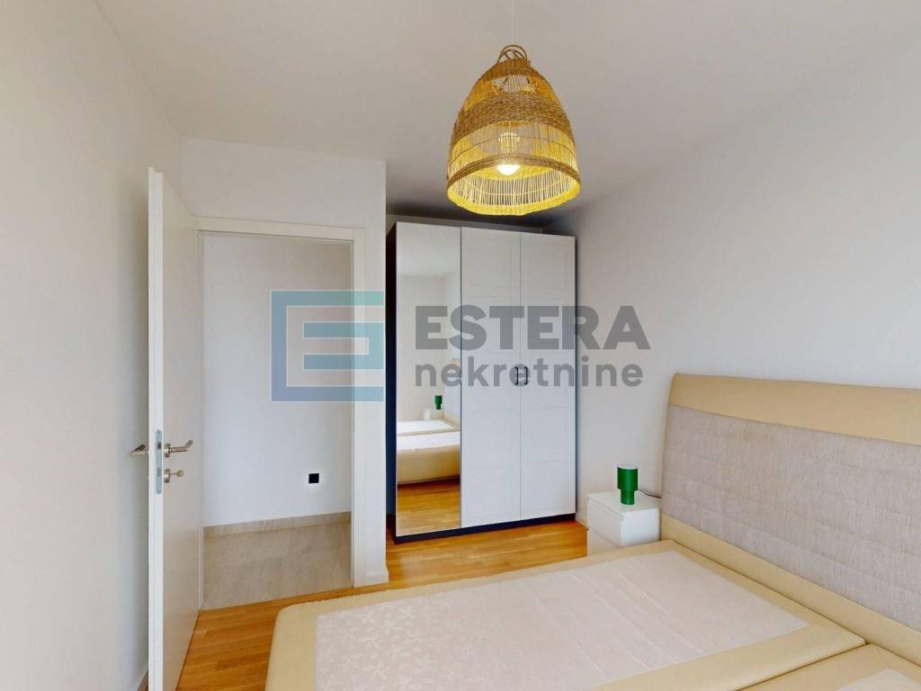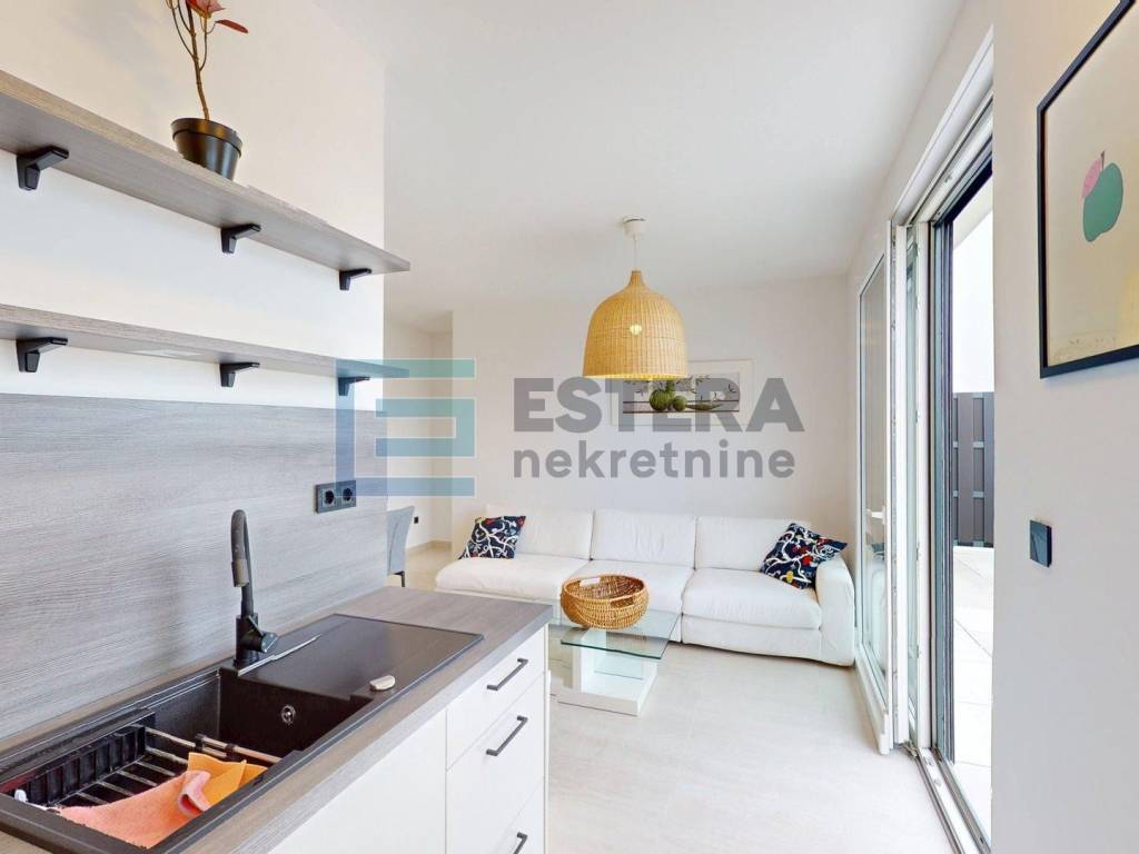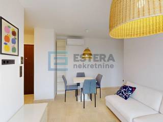 Stanu pripada i spremište površine 2,84 m2 te vanjsko parkirno mjesto od 15 m2. Stan je moderno uređen i u potpunosti opremljen, s podnim grijanjem na dizalicu topline, klima uređajem, perilicom rublja i posuđa te električnim roletama, što osigurava visoku razinu komfora tijekom cijele godine.