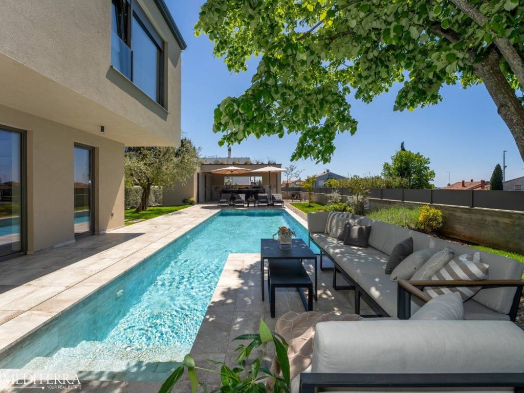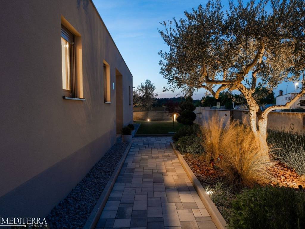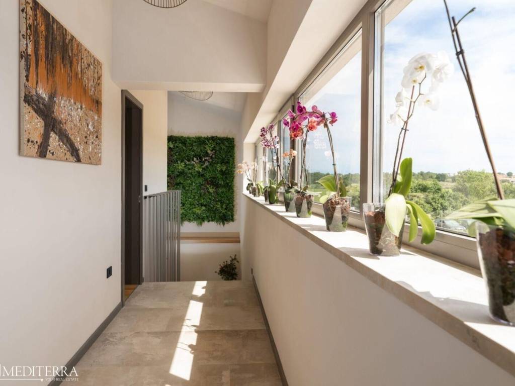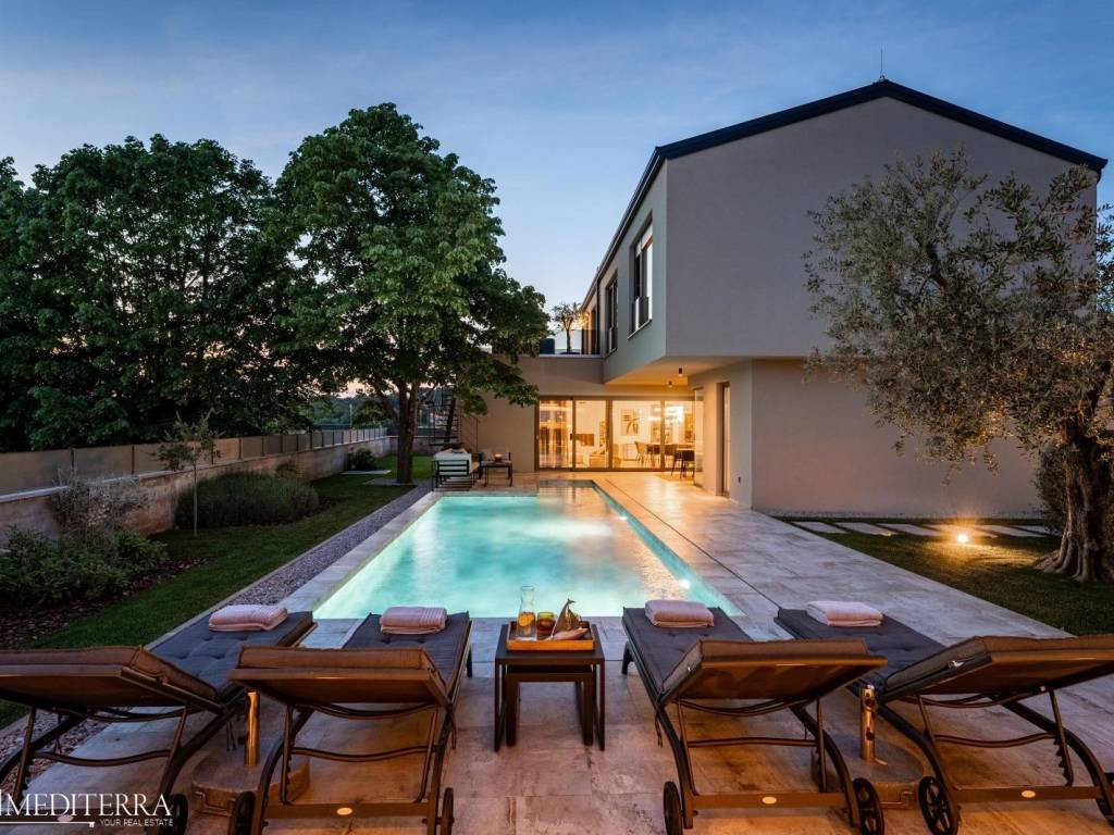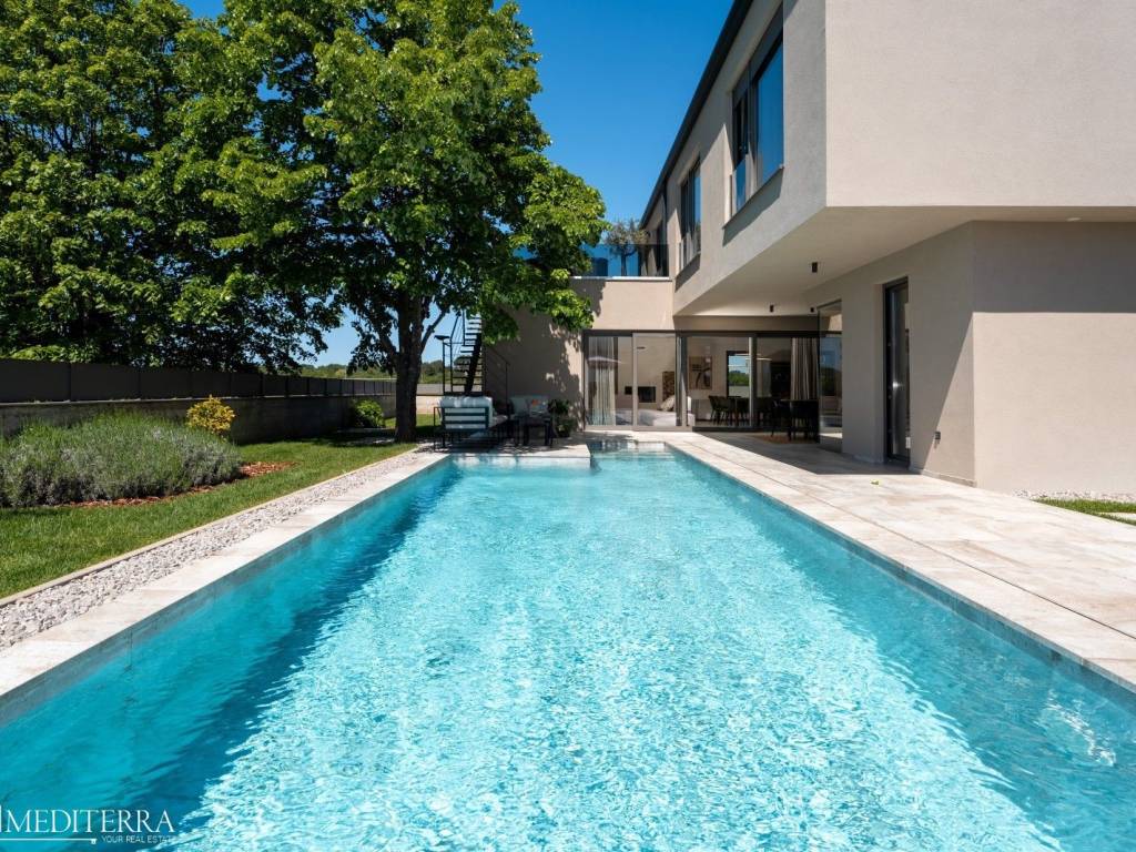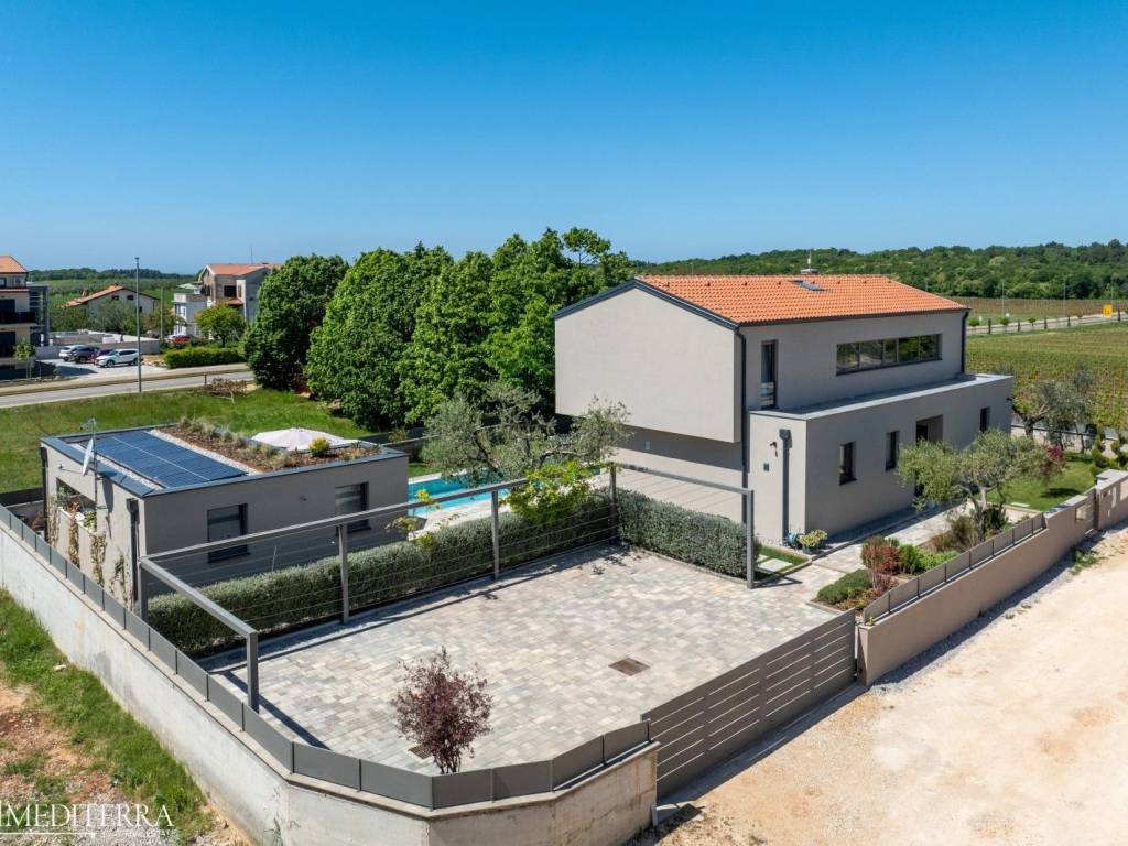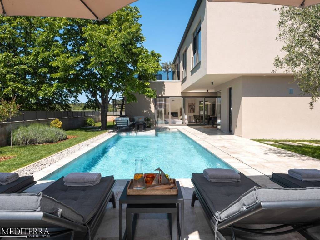 We are selling a beautiful villa in a great location. Villa surroundedolive grove and vineyard in the immediate vicinity of the center of Novigrad and well-kept beaches.The villa consists of two floors connected by internal stairs. Three spacious en-suite rooms upstairs. While the ground floor consists of a spacious living room, a dining room, a large kitchen with a laundry room and a storage room, a toilet, and a large technical room.From the living room, through large glass walls, there is access to a covered terrace, sunbathing area and swimming pool.The yard is landscaped with Mediterranean plants and has irrigation installed.