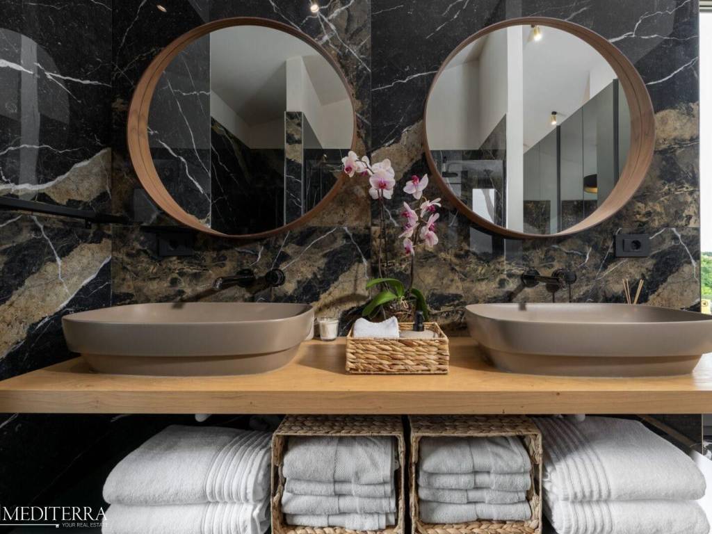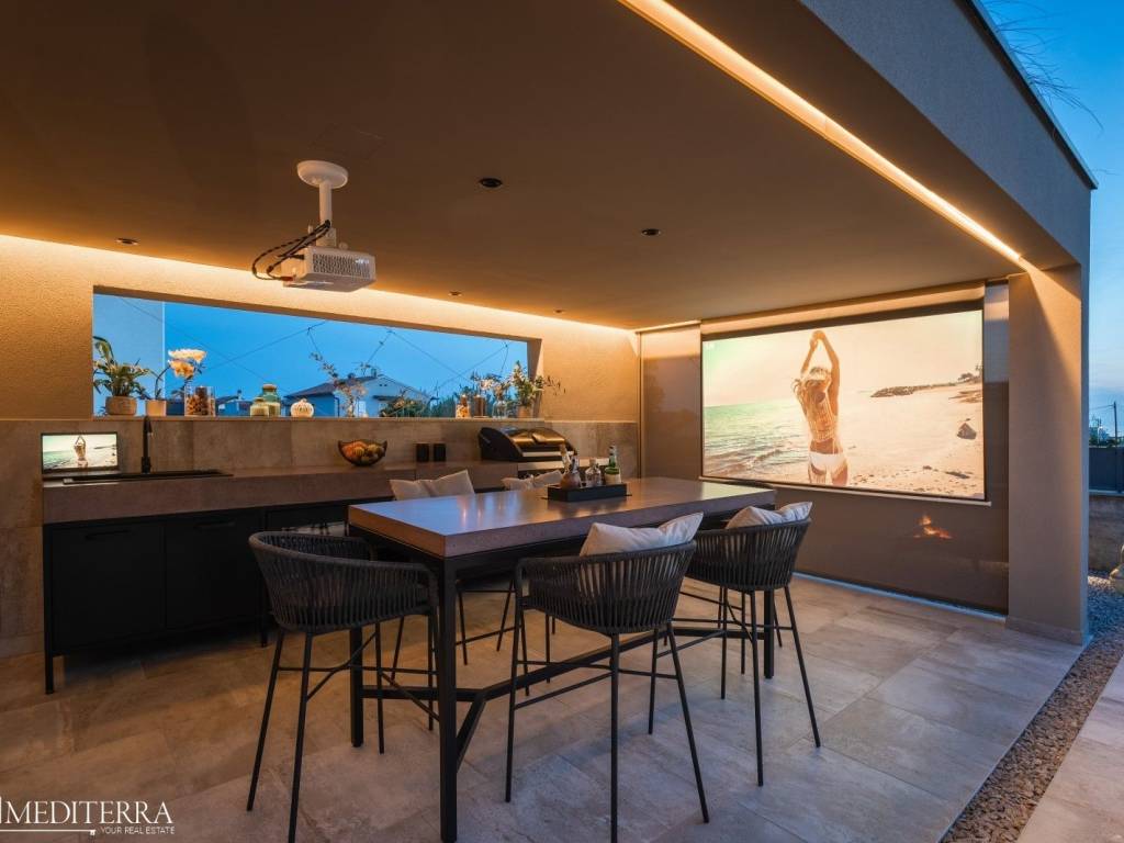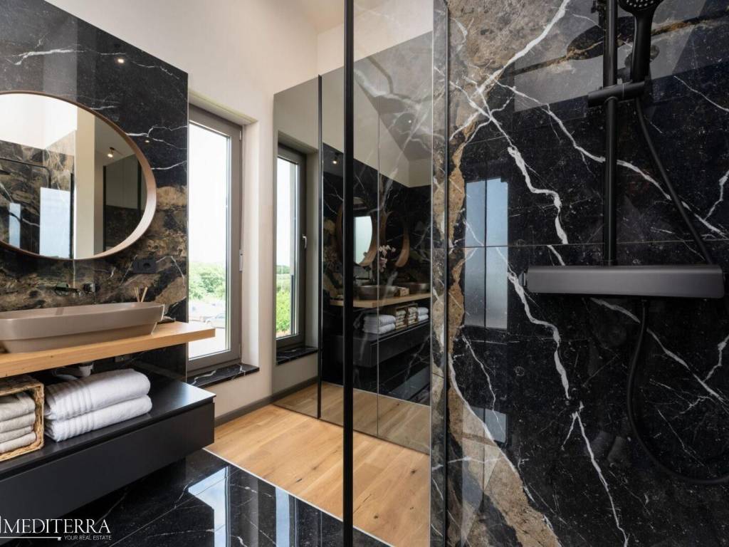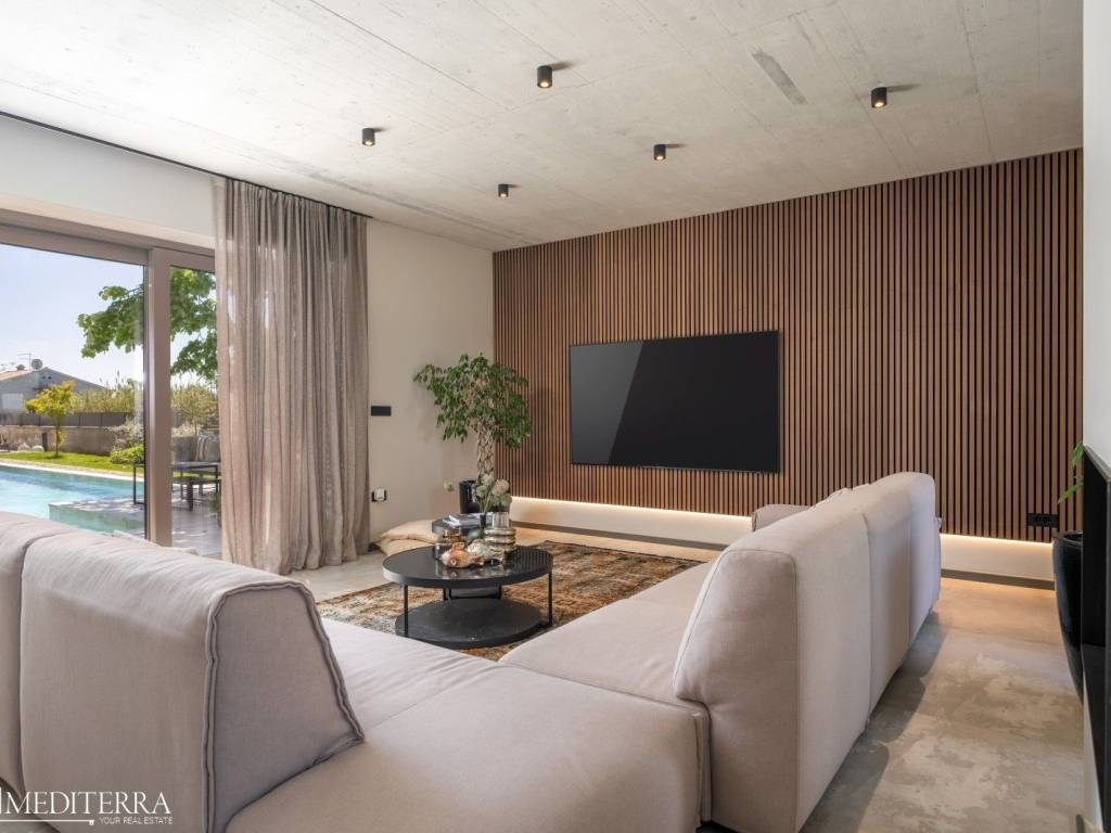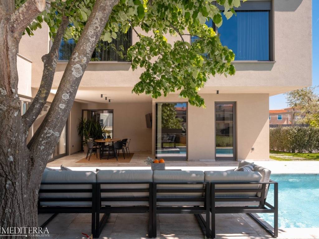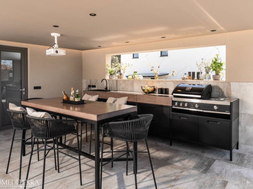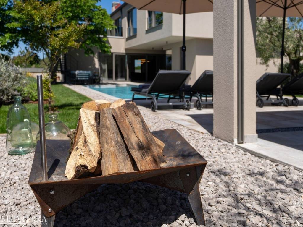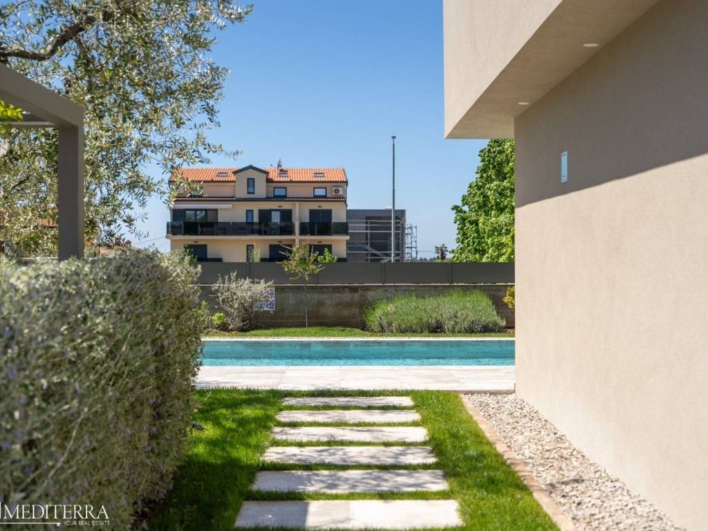 We are selling a beautiful villa in a great location. Villa surroundedolive grove and vineyard in the immediate vicinity of the center of Novigrad and well-kept beaches.The villa consists of two floors connected by internal stairs. Three spacious en-suite rooms upstairs. While the ground floor consists of a spacious living room, a dining room, a large kitchen with a laundry room and a storage room, a toilet, and a large technical room.From the living room, through large glass walls, there is access to a covered terrace, sunbathing area and swimming pool.The yard is landscaped with Mediterranean plants and has irrigation installed.