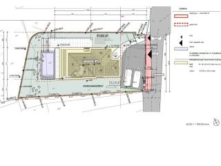 The spacious garden includes a planned swimming pool (24 m²), sunbathing area, and two parking spaces.