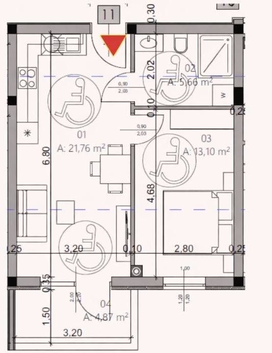Površina stana: 42,96 m²