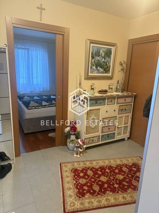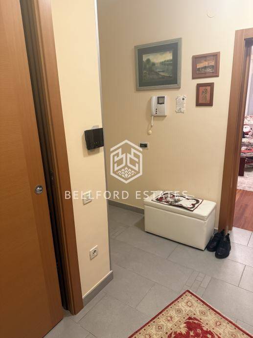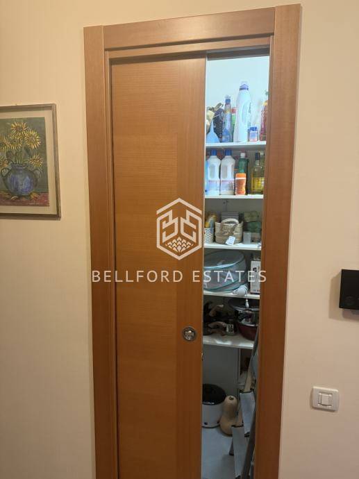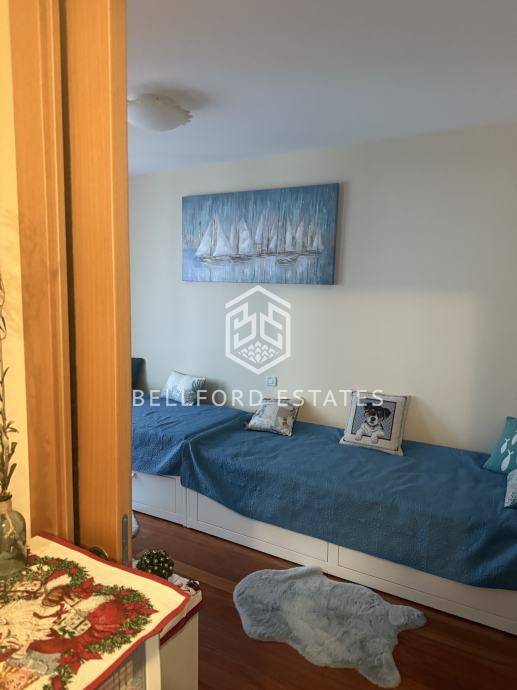 Daje se u dugoročni najam potpuno namješten i opremljen stan u Opatiji, površine 65 m2, tipa 2S+DB. Stan se sastoji od otvorenog dnevnog boravka povezanog s kuhinjom i blagovaonicom, prostrane kupaonice s tuš-kabinom, ostave, velikog predsoblja te dvije spavaće sobe. Veća spavaća soba opremljena je bračnim krevetom dimenzija 180 x 200 cm i ugradbenim ormarom od zida do zida. Manja soba ima dva ležaja koji u uvučenom položaju funkcioniraju kao krevet za jednu osobu, dok se izvlačenjem donjeg dijela dobiva ležaj dimenzija 160 x 200 cm, a u sobi se nalazi i manji ugradbeni ormar.