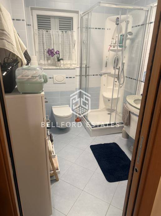 Stanu pripada zatvorena spremišta u prizemlju zgrade te vanjsko parkirno mjesto. Zgrada se nalazi na odličnoj lokaciji, svega sedam minuta hoda od Slatine. Ispred zgrade nalazi se zelenilo koje osigurava ugodnu atmosferu, posebno tijekom ljetnih mjeseci. S lođe se pruža prekrasan pogled na more, što ovaj stan čini idealnim mjestom za ugodan i kvalitetan život.