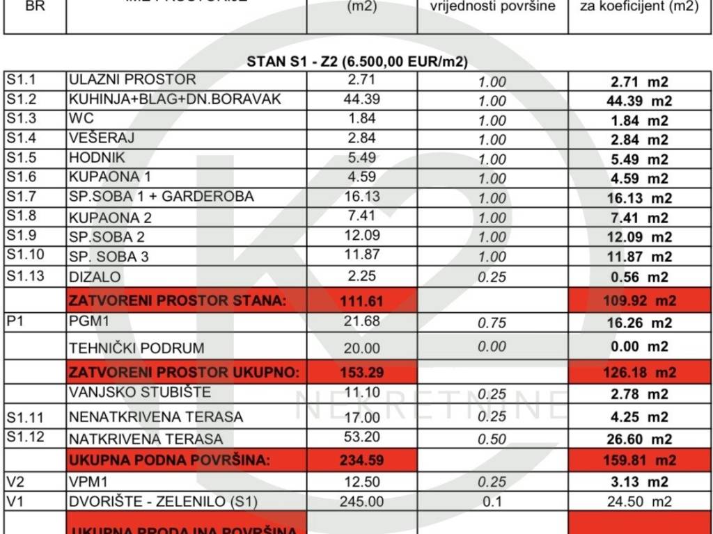 Stan je ukupne neto površine 256,02 m, korisne površine 415,69 m2.