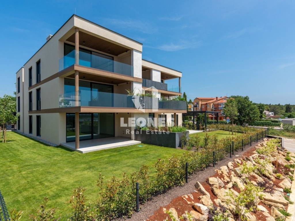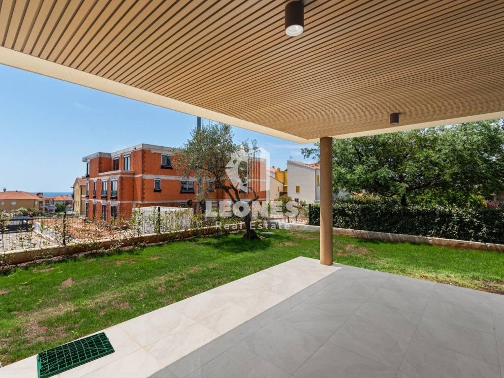 A luxurious apartment on the ground floor with a garden and a view of the sea in Novigrad is for sale.