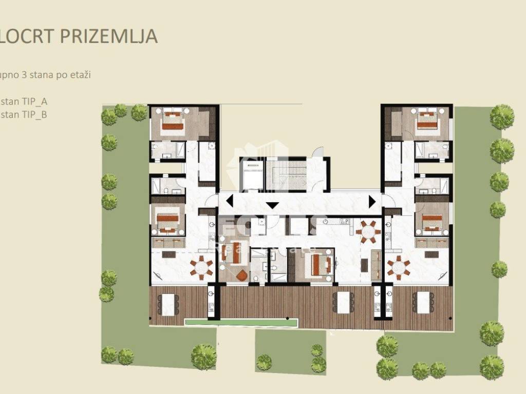 The building, which will have 8 apartments, will be equipped with high-quality materials. All apartments will be equipped with premium Italian LEA Nextone Ceramiche ceramics and oak parquet, Country class.