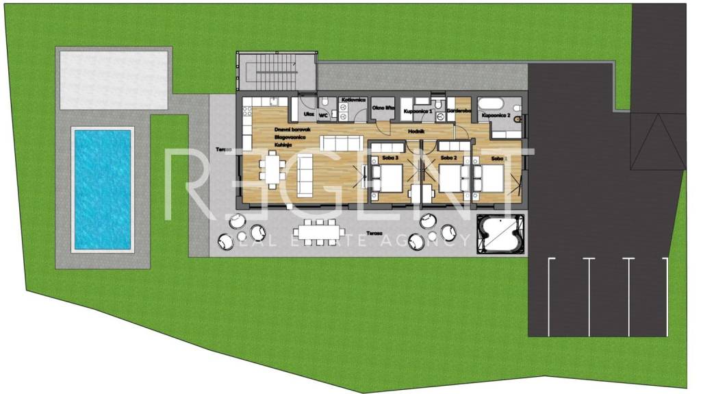 Four-room apartment on the ground floor of a modern urban villa located in a quiet part of Gračani. Surrounded by greenery and open views towards the city and Medvednica, this apartment is ideal for families who want a combination of privacy, comfort and top-quality new construction near the center of Zagreb. The apartment with an area of 187.43 m² is designed with an emphasis on functionality and spaciousness. The central part is an impressive open space living room with a kitchen and dining room of 44 m², filled with natural light thanks to large glass walls. The apartment has three bedrooms, the main one with its own wardrobe, two modernly equipped bathrooms, an additional toilet and a laundry room. A covered terrace, an additional uncovered terrace and a private garden of 245 m² add special value – a perfect place for family gatherings, children's play or relaxation in the silence of your own green corner. The price includes a garage and an outdoor parking space, and the elevator allows direct access from the garage to the apartment. The apartment is equipped with a heat pump, underfloor and ceiling heating and ceiling cooling, a ventilation system with a recuperator, three-layer aluminum-wood carpentry and electric blinds and mosquito nets. Energy efficiency A+ ensures long-term savings and a healthy microclimate of the space. Gračani is one of the most desirable locations for living under Sljeme – a peaceful, residential environment with quick connections to the city center. In the immediate vicinity there is an elementary school, kindergarten, shops, the Meridian Shopping Center, the tram zone and the Sljeme cable car. Everything you need for everyday life is available in just a few minutes. For more information, feel free to contact us.