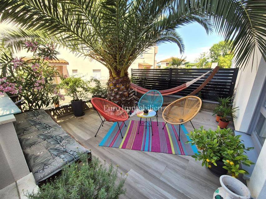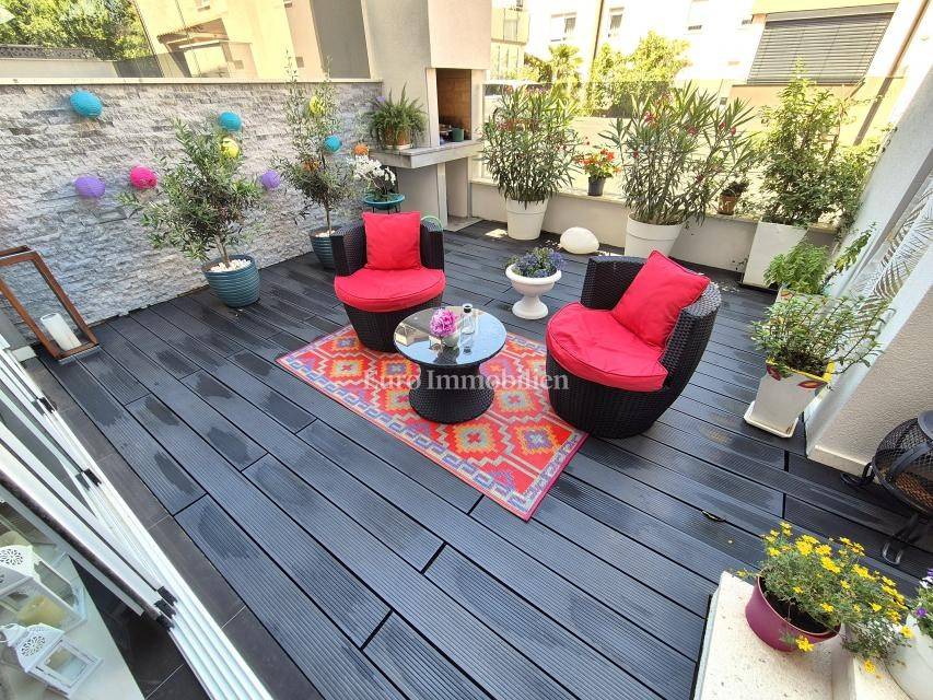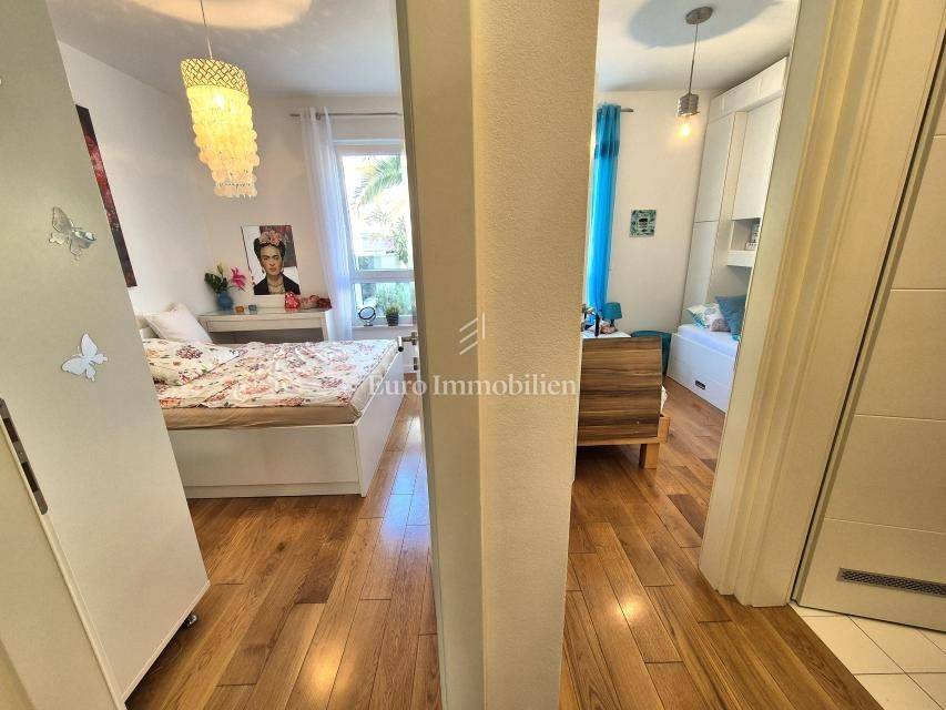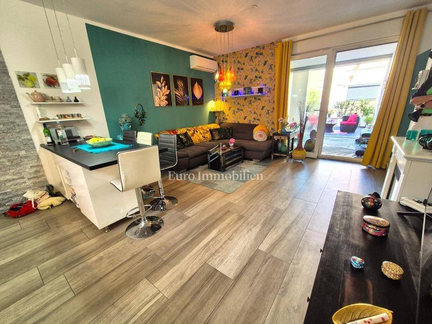 The apartment is located on the ground floor and spreads over 66.15 m2. It consists of a living room with a kitchen, a hallway, a storage room, a bathroom, two bedrooms and a loggia. It has a separate external entrance, PVC carpentry with blinds, two air conditioners and underfloor heating in the living room. The apartment has a landscaped garden area of 47 m2 and one parking space. It is fully equipped and furnished and is being sold as such. It is located in an excellent part of Njivice, only 150 meters from the beach and the sea!