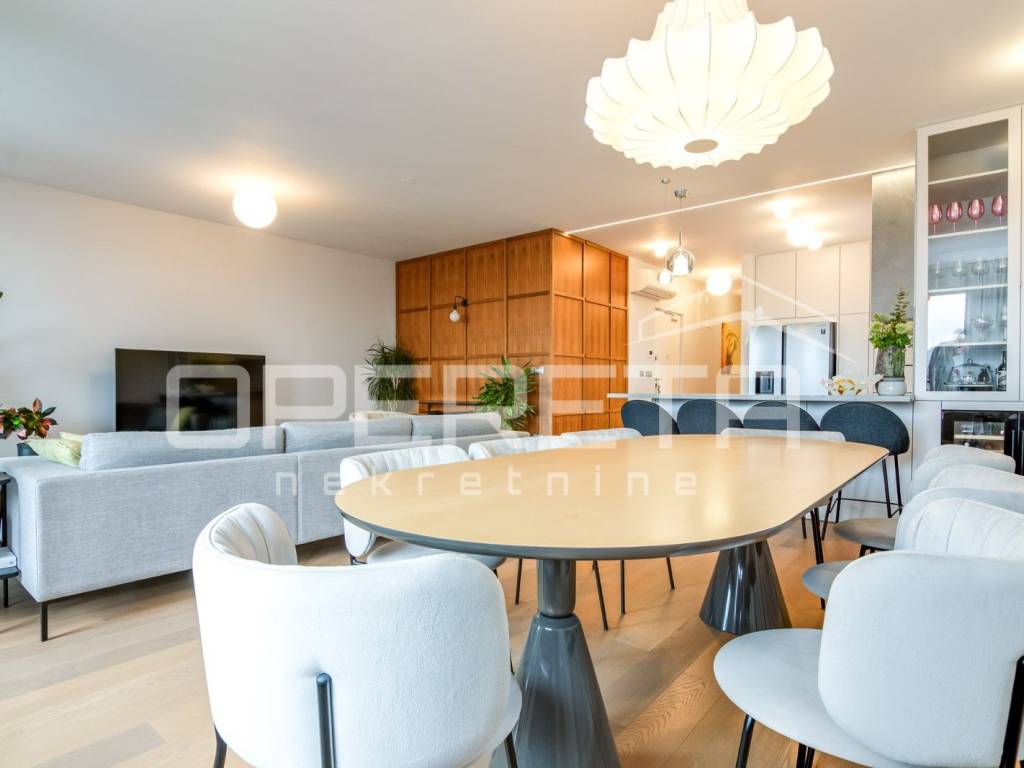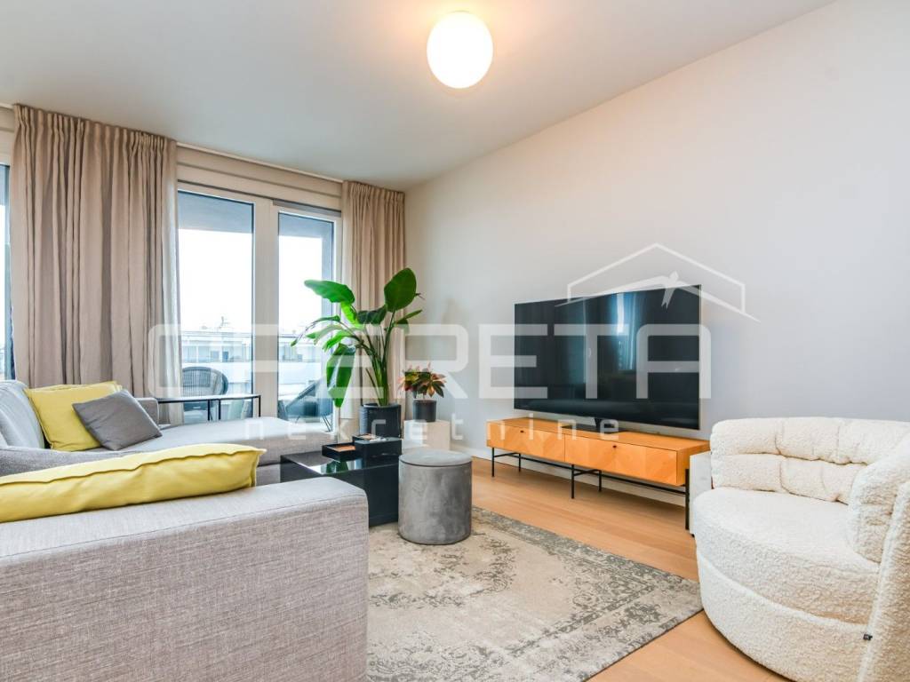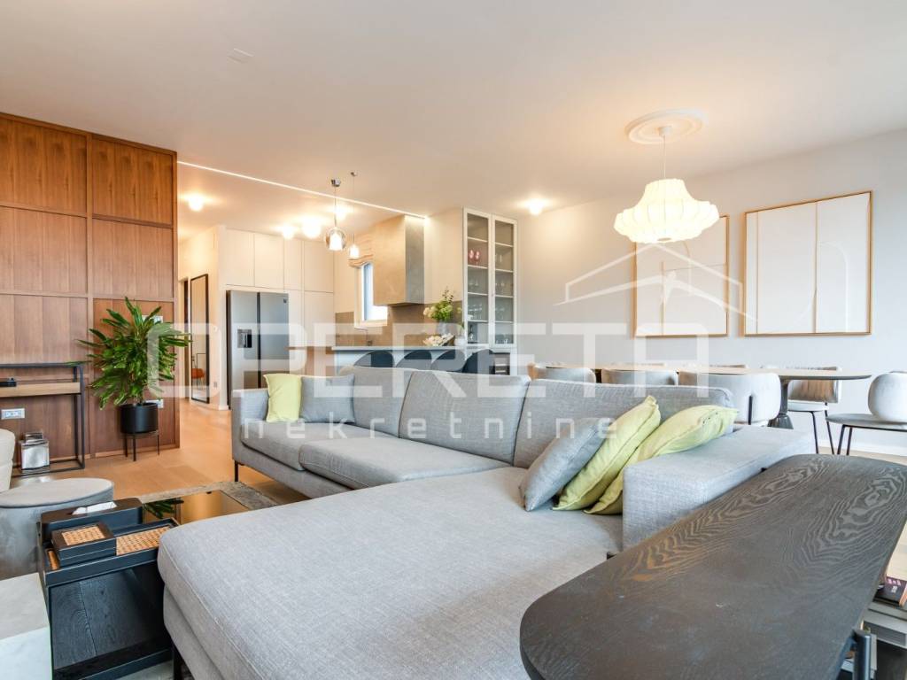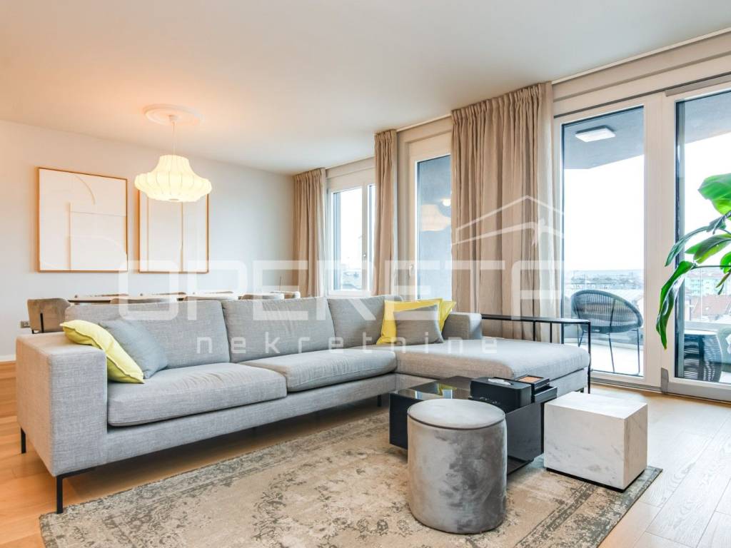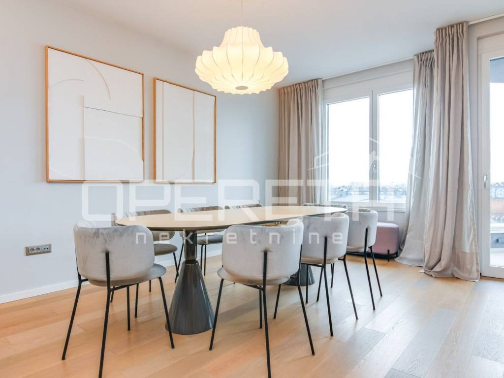 PRODAJA, STAN, ZAGREB, TREŠNJEVKA, PENTHOUSE, 116m2, stan 3s, Trakošćanska ulica. Stan ima 90m2 zatvorenog prostora i sastoji se od dnevne sobe koja sa blagovaonicom i kuhinjom čini veliki i svijetli open space prostor, 2 spavaće sobe sa mogućnošću dobijanja još jedne (originalni tlocrt), kupaonice sa WC-om i jednog odvojenog WC-a. U ukupnu kvadraturu stana su obračunati prema koeficijentu loggia, terasa te velika dupla garaža od 30m2, na -1 etaži zgrade. Stan je luksuzno i dizajnerski uređen, s pažljivo biranim materijalima i namještajem vrhunske kvalitete. Prostor je funkcionalno organiziran, prozračan i bogat prirodnim svjetlom, što stvara iznimno ugodan ambijent za život. Moderno uređena kuhinja, podnop grijanje u cijelom stanu, pvc, klime, kamere... Garaža je posebno uknjižena i nije uvijet za kupnju stana. Ekskluzivan penthouse u centru Trešnjevke,predstavlja rijetku priliku na tržištu te je idealan za Kupca koji traži prestiž, komfor i vrhunsku lokaciju u neposrednoj blizini svih sadržaja tramvajskih linija, trgovina, restorana, škola i ostalih gradskih pogodnosti.