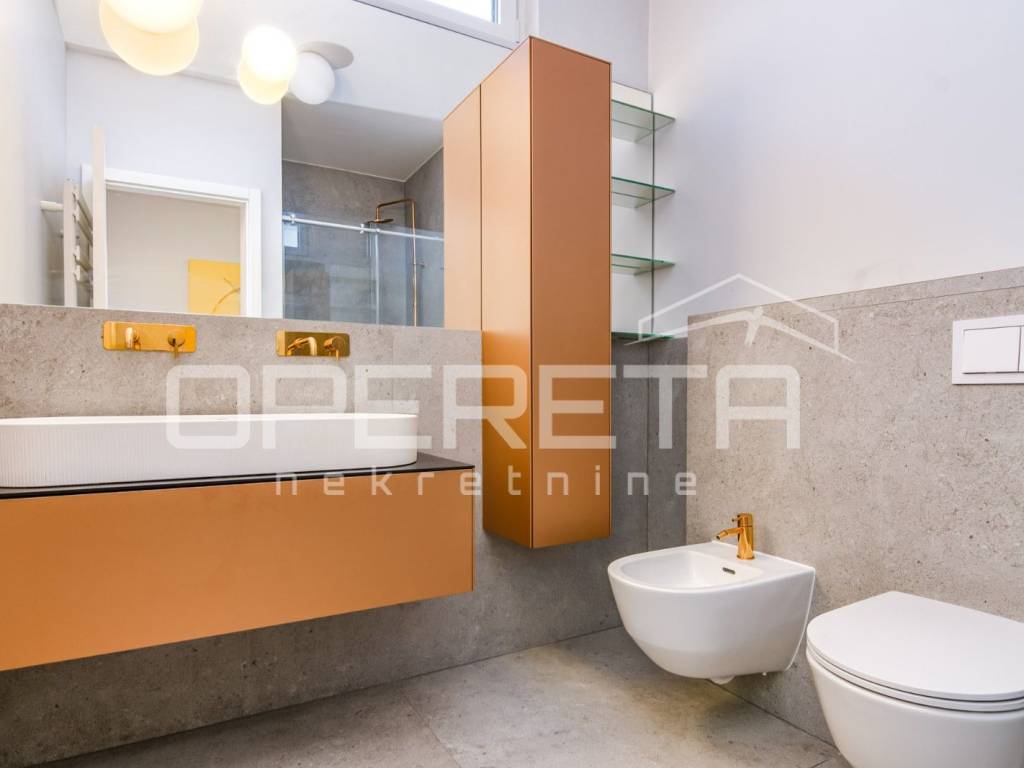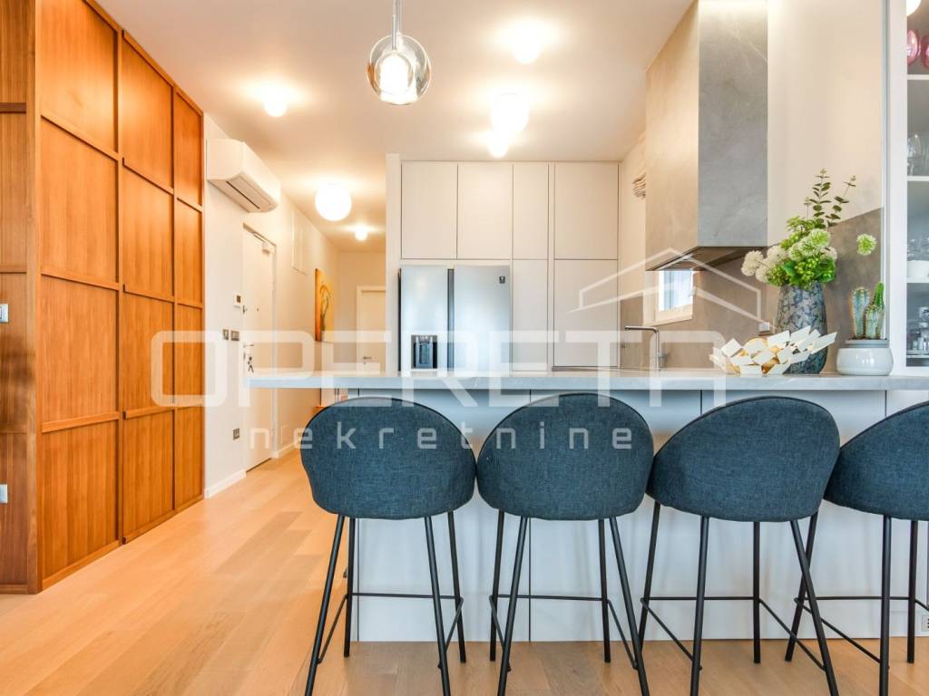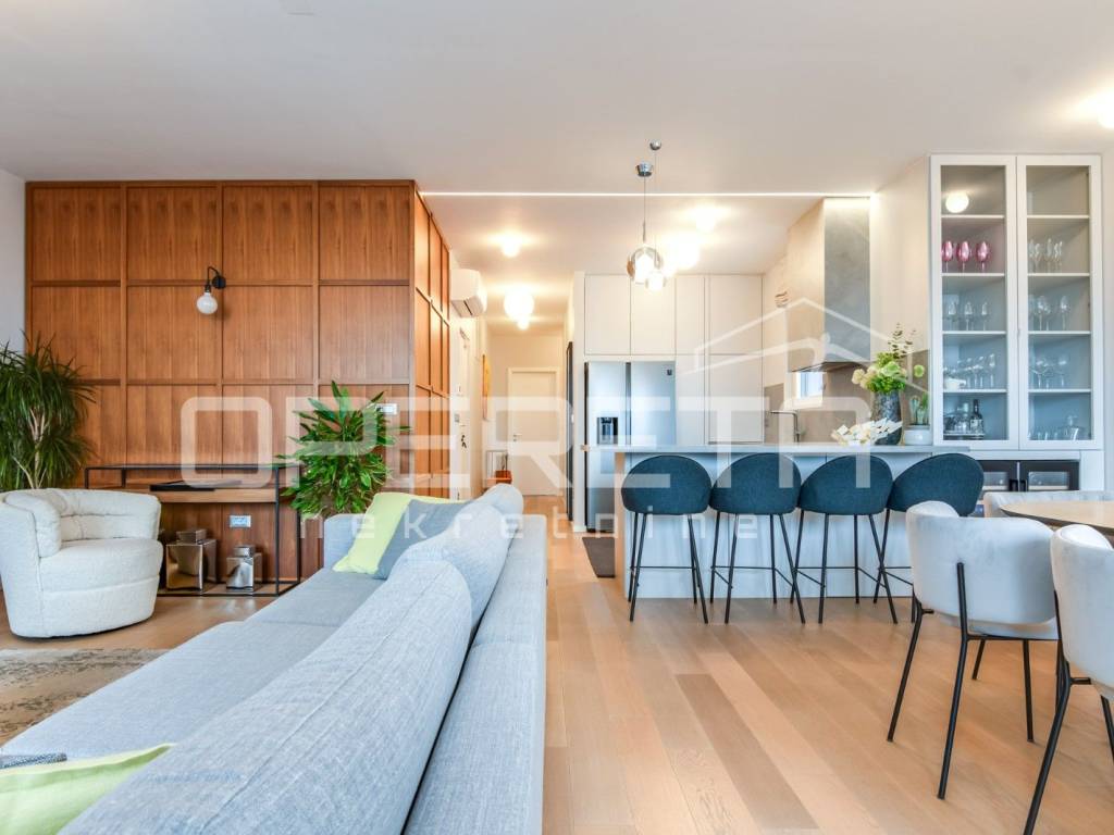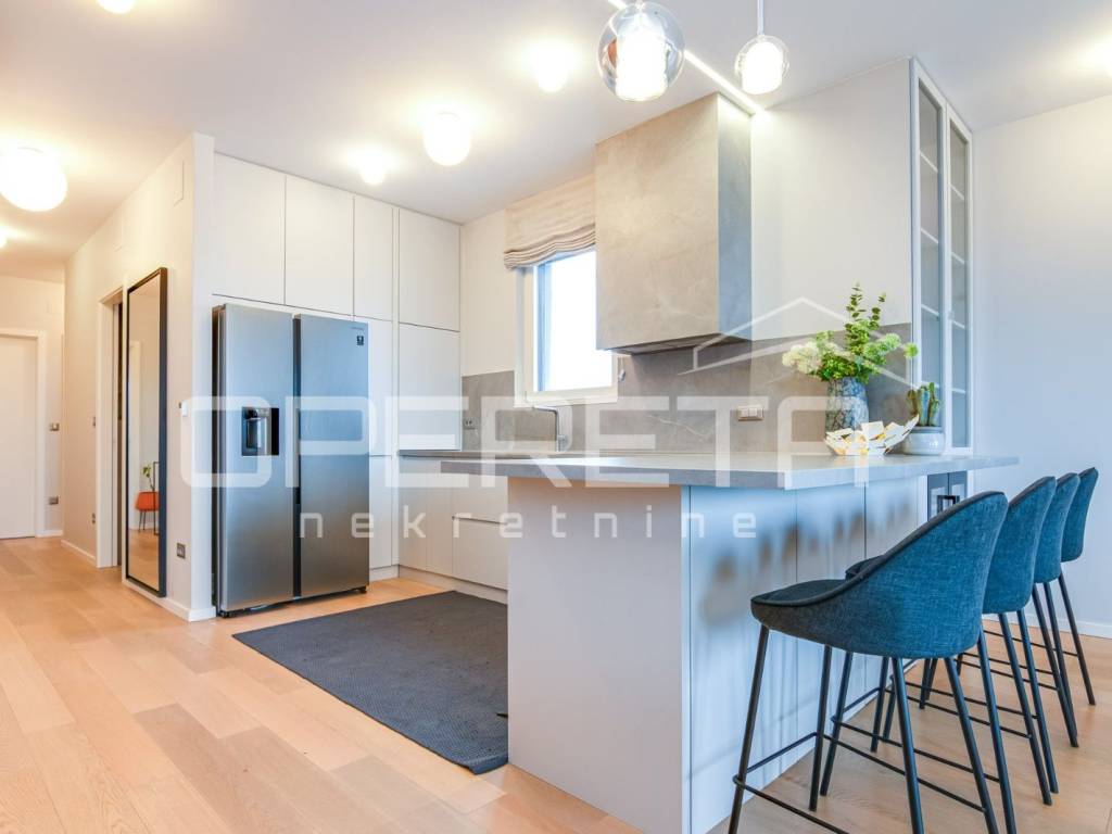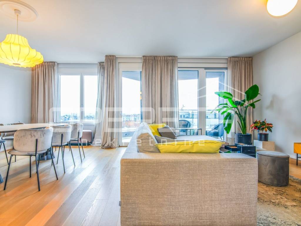 PRODAJA, STAN, ZAGREB, TREŠNJEVKA, PENTHOUSE, 116m2, stan 3s, Trakošćanska ulica. Stan ima 90m2 zatvorenog prostora i sastoji se od dnevne sobe koja sa blagovaonicom i kuhinjom čini veliki i svijetli open space prostor, 2 spavaće sobe sa mogućnošću dobijanja još jedne (originalni tlocrt), kupaonice sa WC-om i jednog odvojenog WC-a. U ukupnu kvadraturu stana su obračunati prema koeficijentu loggia, terasa te velika dupla garaža od 30m2, na -1 etaži zgrade. Stan je luksuzno i dizajnerski uređen, s pažljivo biranim materijalima i namještajem vrhunske kvalitete. Prostor je funkcionalno organiziran, prozračan i bogat prirodnim svjetlom, što stvara iznimno ugodan ambijent za život. Moderno uređena kuhinja, podnop grijanje u cijelom stanu, pvc, klime, kamere... Garaža je posebno uknjižena i nije uvijet za kupnju stana. Ekskluzivan penthouse u centru Trešnjevke,predstavlja rijetku priliku na tržištu te je idealan za Kupca koji traži prestiž, komfor i vrhunsku lokaciju u neposrednoj blizini svih sadržaja tramvajskih linija, trgovina, restorana, škola i ostalih gradskih pogodnosti.