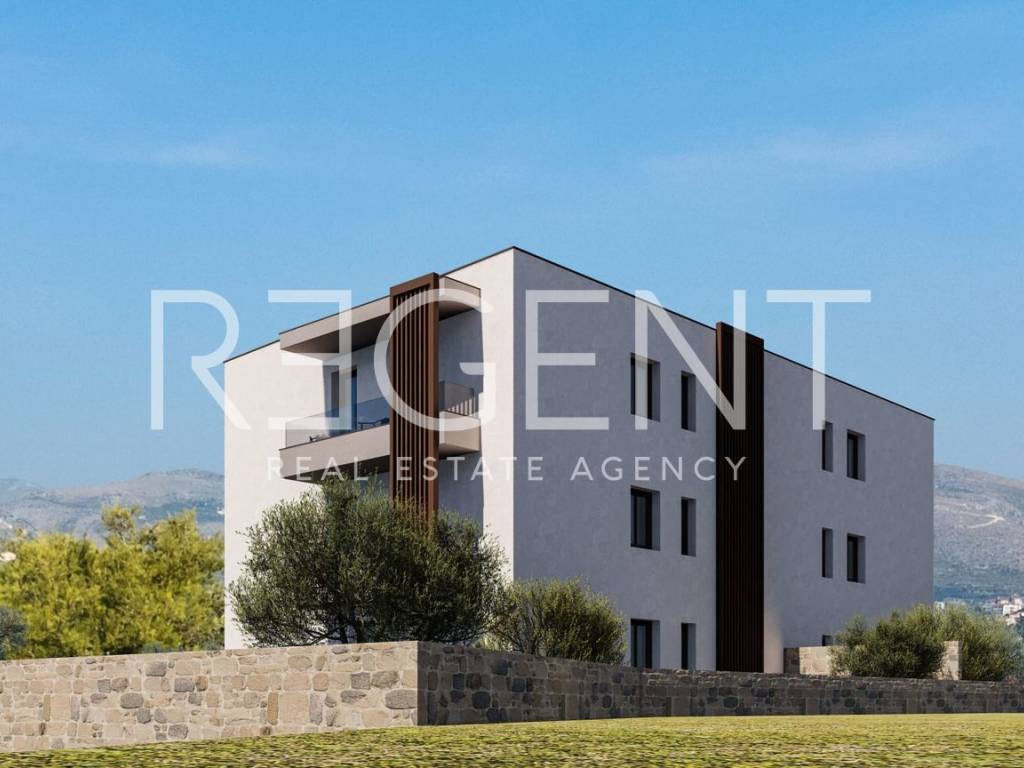 Apartment S2 is located on the ground floor of a modern new building in an excellent and peaceful location in Okrug Novi. With a total net area of 109.35 m², this property is characterized by a functional layout and top-quality construction. The spaces include a spacious living room with a kitchen and dining area, three bedrooms and two bathrooms with toilets, both of which are equipped with underfloor heating. From the living area and bedrooms, you can access two covered terraces of 5.22 m² and 3.13 m², which provide additional comfort and a pleasant space for outdoor living. In addition, the property includes a landscaped yard of 19.95 m² with a swimming pool, which, together with the terraces, offers a pleasant ambiance and a partial sea view. There is also the possibility of purchasing a garage parking space. The spaces are equipped with PVC windows and doors, air conditioning in all rooms, and top-quality thermal and sound insulation. High-quality and durable materials have been used, ensuring a high level of comfort and energy efficiency. One of the biggest advantages of this property is its location. It is located in the immediate vicinity of the beach and offers a beautiful sea view, and all necessary amenities are nearby, including shops and restaurants. The center of Trogir is only a few minutes' drive away, providing the perfect combination of peace and the availability of urban amenities. This property represents an excellent opportunity for a peaceful family life, a vacation by the sea, or as an investment for tourist rental. For more information and to arrange a viewing, please feel free to contact us.