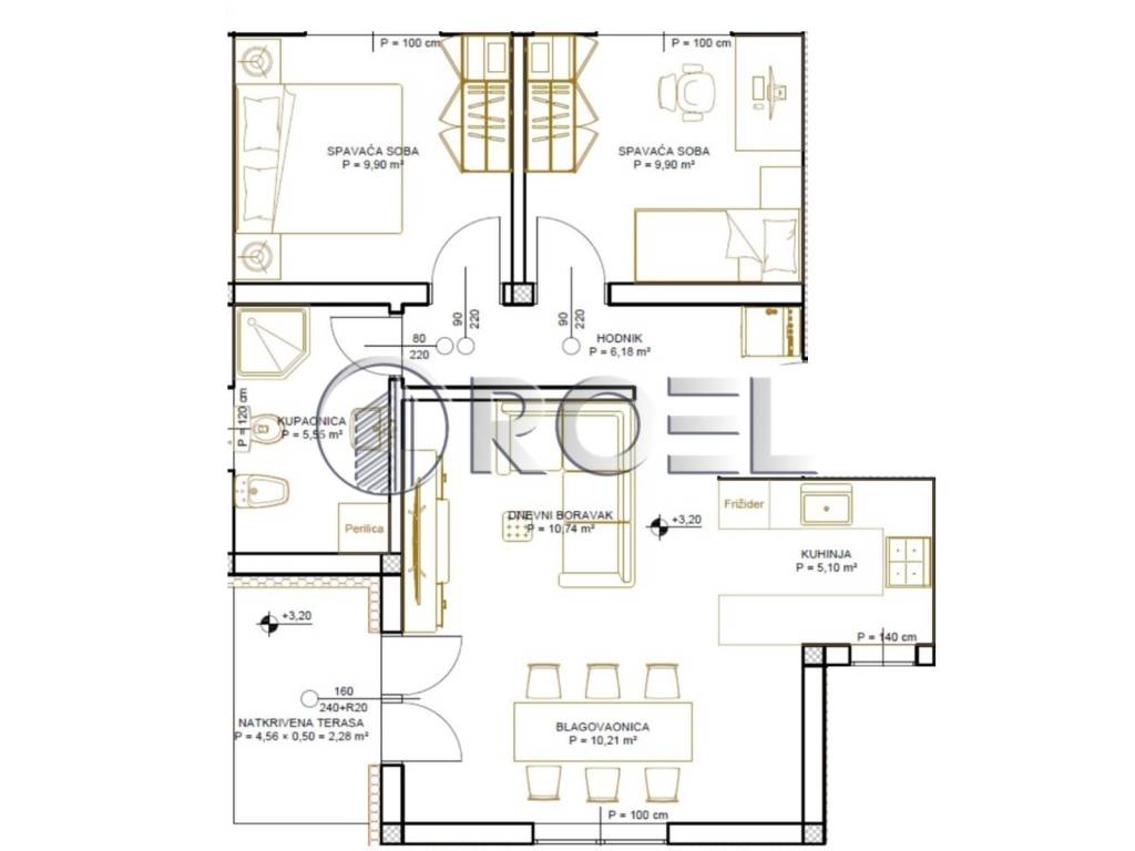 The apartment has a living area of 71.03 m and consists of a spacious living room, kitchen connected to the dining area, two comfortable bedrooms, hallway, and bathroom. The terrace provides additional space for relaxation and outdoor enjoyment.