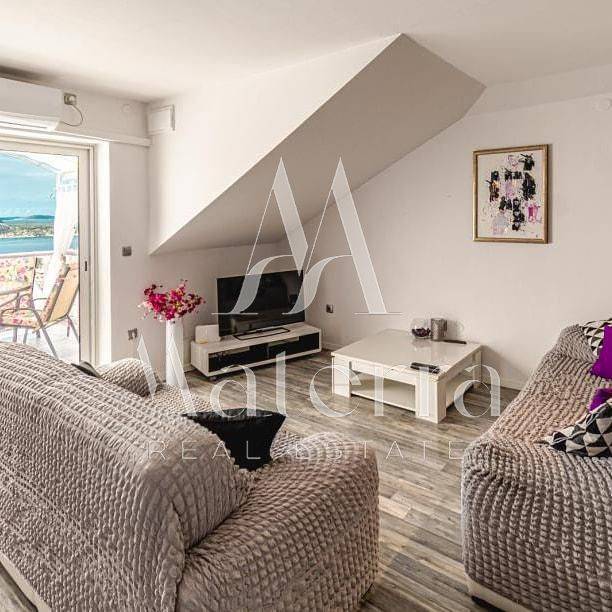 In Šibenik, in the attractive Varoš neighborhood, a spacious apartment with a total area of 116 m² is for sale. It is located on the second floor of a well-maintained older building and was recently renovated in 2025. The apartment consists of an entrance hallway, a bathroom, two bedrooms, a kitchen with dining area and living room, and a terrace offering an impressive view of the city, the sea, and the Šibenik Channel. The interior is modern, tidy, and well-maintained.