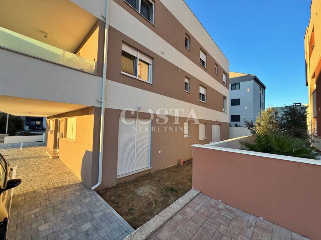An apartment with a garden in a new building in Plovanija in Zadar is for sale. The apartment with a living area of 63.51 m2 is located on the ground floor of a small residential building with eight units. It consists of a living room, kitchen and dining room, two bedrooms, bathroom and hallway. The apartment also has a garden of 78.6 m2, a storage room in the basement of the building and two private parking spaces in the yard. The total usable area of the apartment together with the accessories is 171.51 m2 (K.V. 79.50 m2).