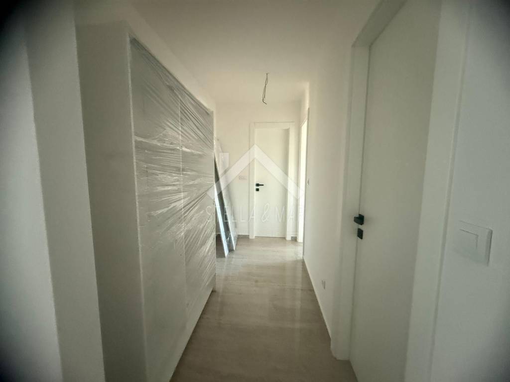 The apartment is located on the second floor of a small apartment building. It has an area of 83.92 and has a hallway, a spacious living room with kitchen and dining area. three bedrooms, a toilet, a bathroom and two terraces. The apartment also has a roof terrace of 49.30m2 as well as two parking spaces. All rooms are air-conditioned. The terrace and the roof terrace offer a view of the sea.