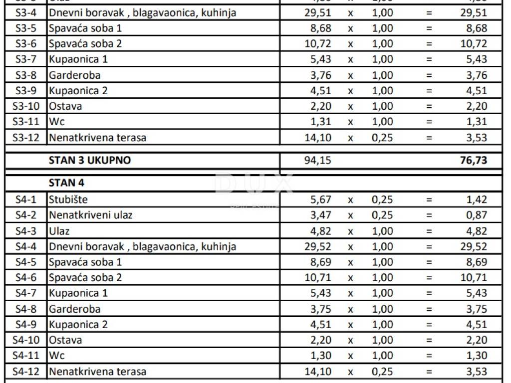 U pitanju su 3 zemljišta s 3 zgrade po 4 stana, sve ukupno 12 stanova koji se nalaze u drugom redu do mora te se već iz prizemlja pruža pogled na more dok su u prvom redu već izgrađene vile s bazenom.