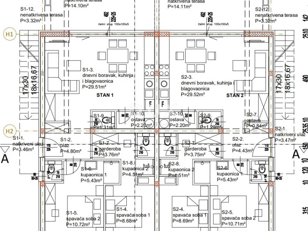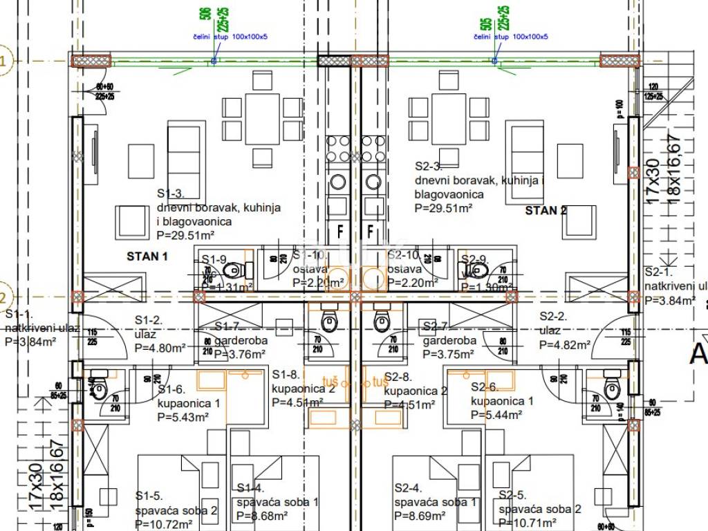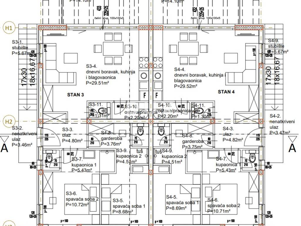Po projektu stanovi su dosta komotni, svaki ima 2 spavaće sobe, svaka sa svojom vlastitom kupaonicom.