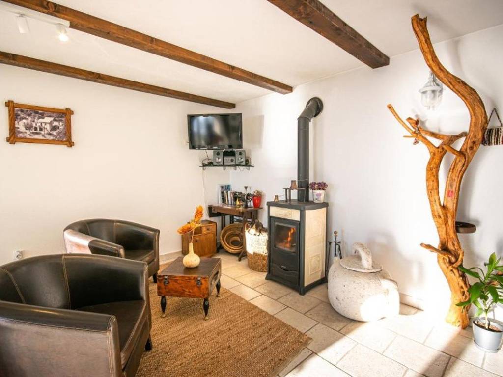 The house is equipped with underfloor heating, wood stoves, air conditioning, an additional heating source and solar panels, which ensures a high level of comfort and energy efficiency (energy class C).
