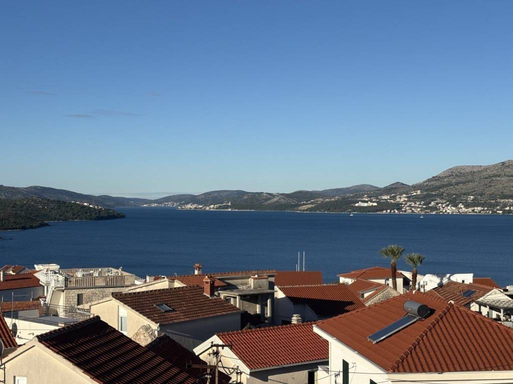 A luxurious apartment near the sea is for sale in Okrug Gornji, on the southern side of the island of Čiovo. This attractive property is located just 15 minutes walk from the town center, where there are shops, restaurants, cafes, beaches and all other amenities that make this area one of the most desirable on the island. The proximity of all necessary amenities, along with a quiet and pleasant environment, makes this location a perfect choice for vacation, living or tourist rental.