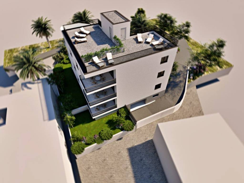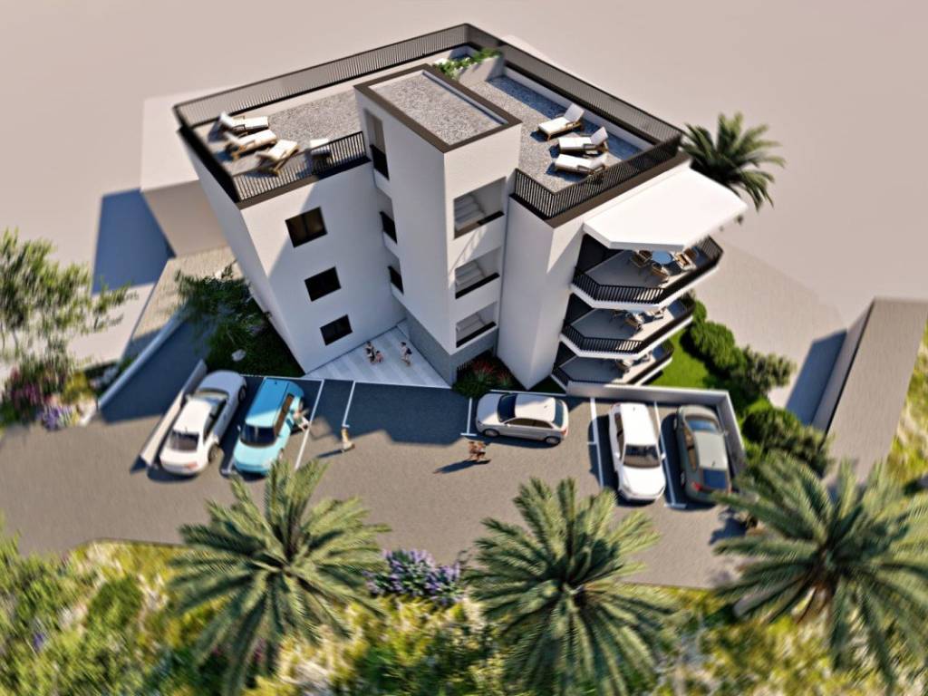 The apartment has two spacious bedrooms and a total of 54,56 m of interior living space, including an open concept kitchen, dining and living room and a bathroom. The apartment is further enhanced by a 14,09 m balcony, which provides an ideal space for relaxing and enjoying the Mediterranean climate and view and half of the roof terrace above the apartment, measuring some 68,45 m, with a stunning sea view.