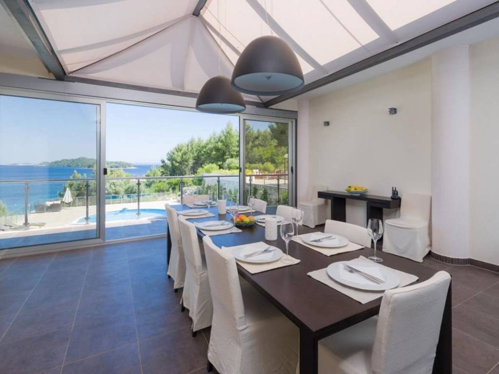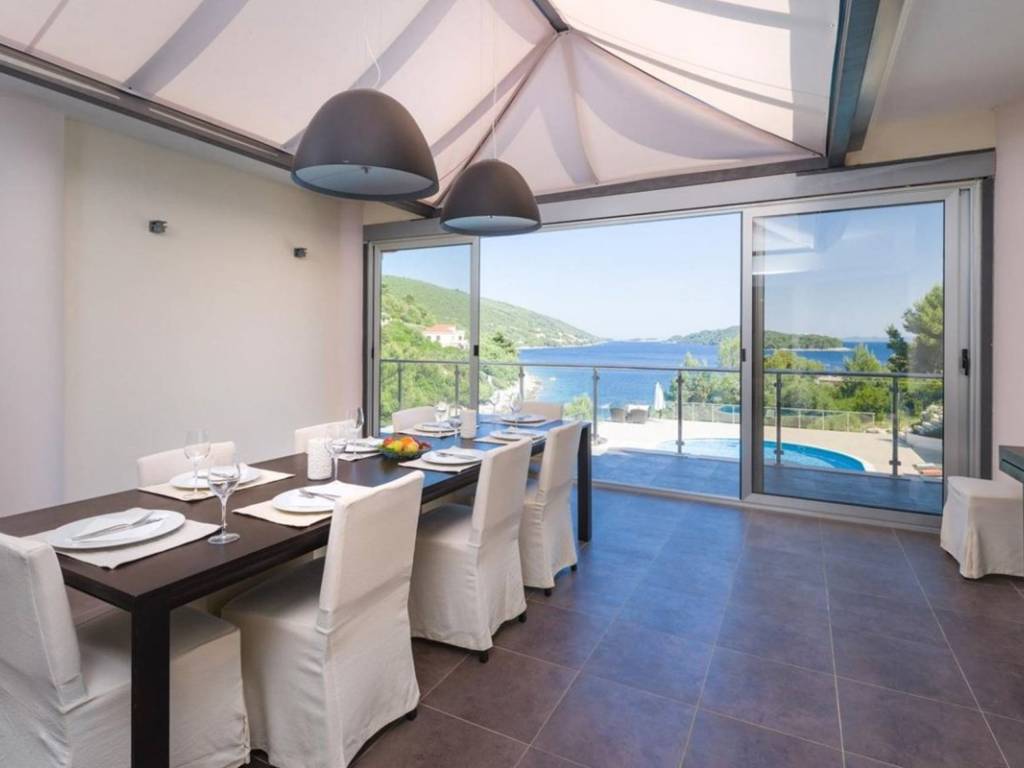 Located in one of the most sought-after areas on the southern coast of Korčula Island, this magnificent villa is tucked away in a peaceful cove right next to a crystal-clear beach. It offers a true sanctuary of privacy, comfort, and unmatched elegance a perfect blend of authentic island living, modern architecture, and refined luxury.