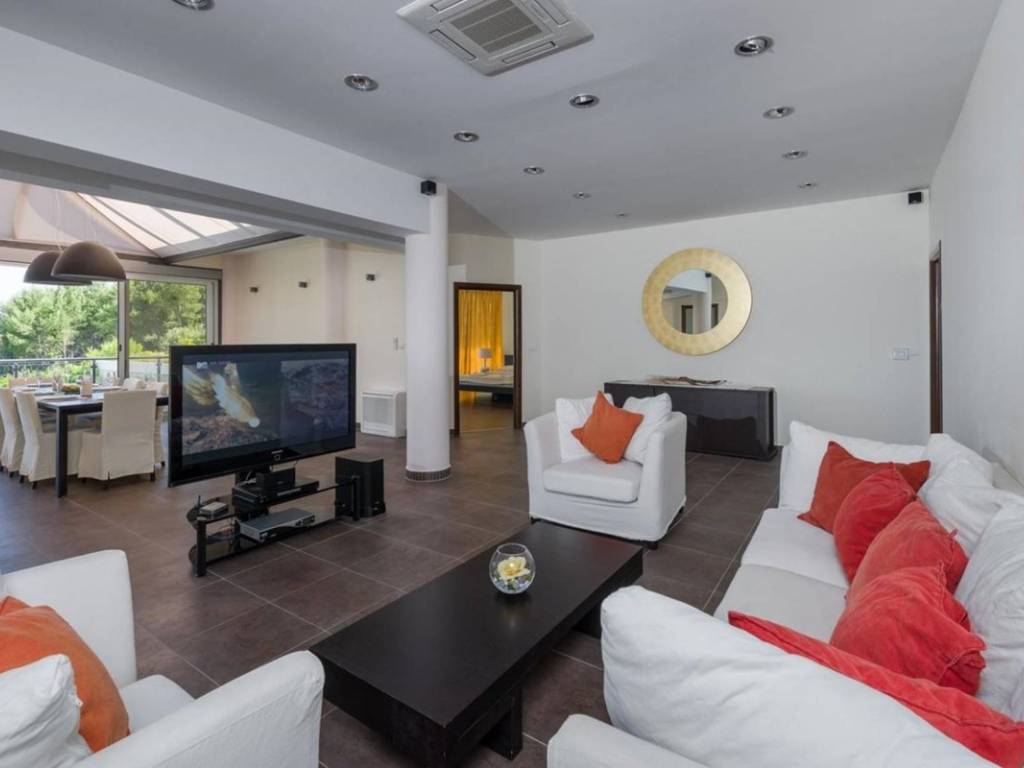 Surrounded by fragrant pine trees and olive groves, the villa exudes a sense of tranquility and harmony. Spacious sea-view terraces, elegant outdoor lounge areas, and a 100 m swimming pool create an idyllic setting for relaxation and sunbathing throughout the long Mediterranean summer. The 500 m terrace is ideal for summer dinners, private gatherings, or simply enjoying unforgettable sunsets over the Adriatic Sea.