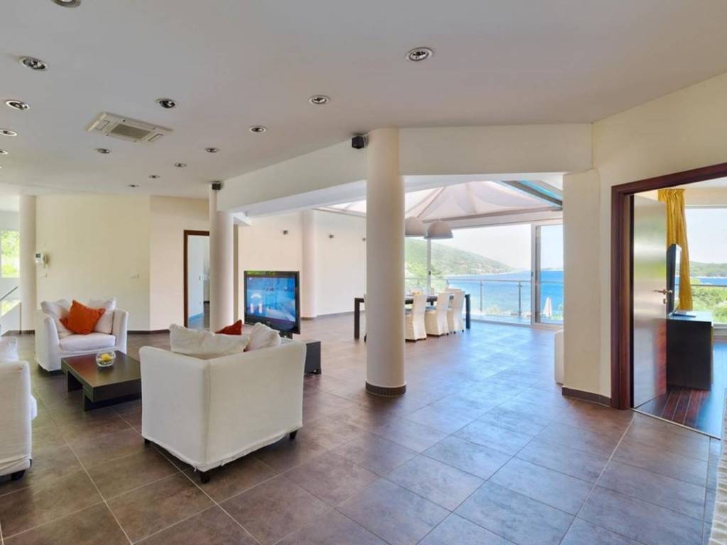 Large glass walls allow natural light to flood the interior, while every room offers breathtaking views of the sea and the surrounding landscape.