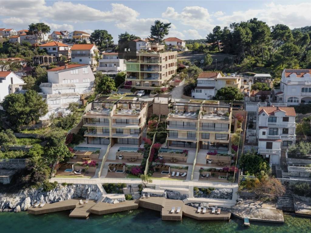 A unique apartment with a spacious balcony in the second row to the sea is offered in an excellent location in Okrug Donji. Located in the immediate vicinity of the sea, with a beautiful view and direct access to the sea, oriented to the northeast, it fits perfectly into the Mediterranean environment. The apartment is located in a residential building with a total of seven apartments, and access is provided from the south. The apartment is not only part of a luxury apartment complex, but a comprehensively designed space for living, rest and relaxation.