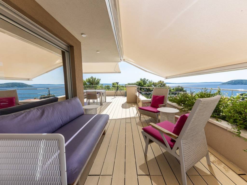 The villa is located in the immediate vicinity of the beach, surrounded by greenery and the sea, providing complete privacy and peace. It extends on a plot of 930 m, with an impressive 1,100 m of living space spread over five floors, connected by an internal elevator. Panoramic views of the sea, islands and the historic center of Split create a unique experience of luxury and relaxation.
