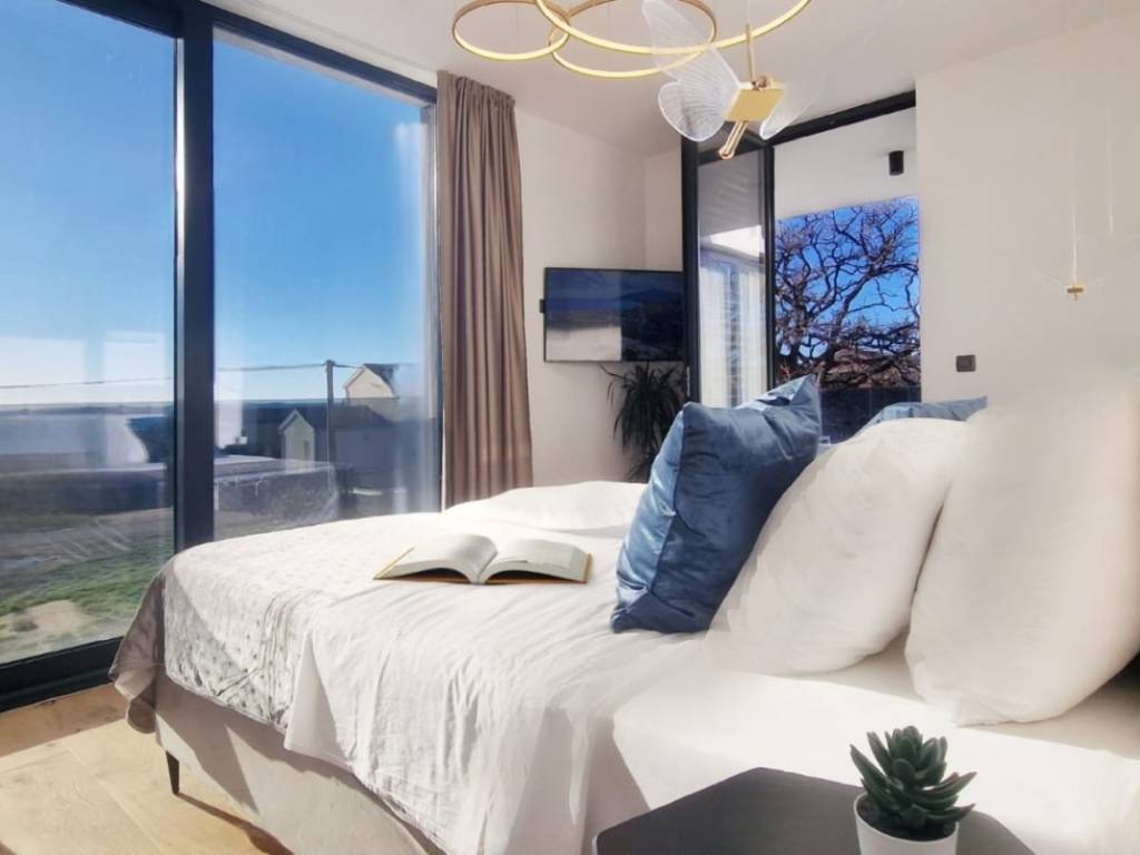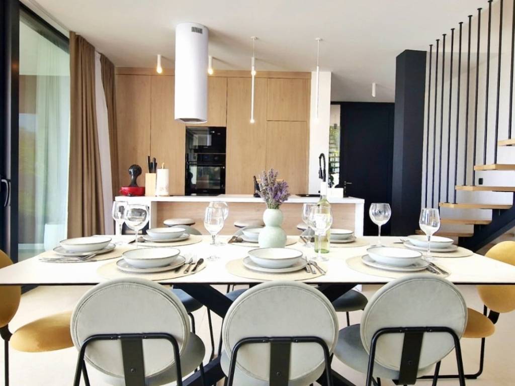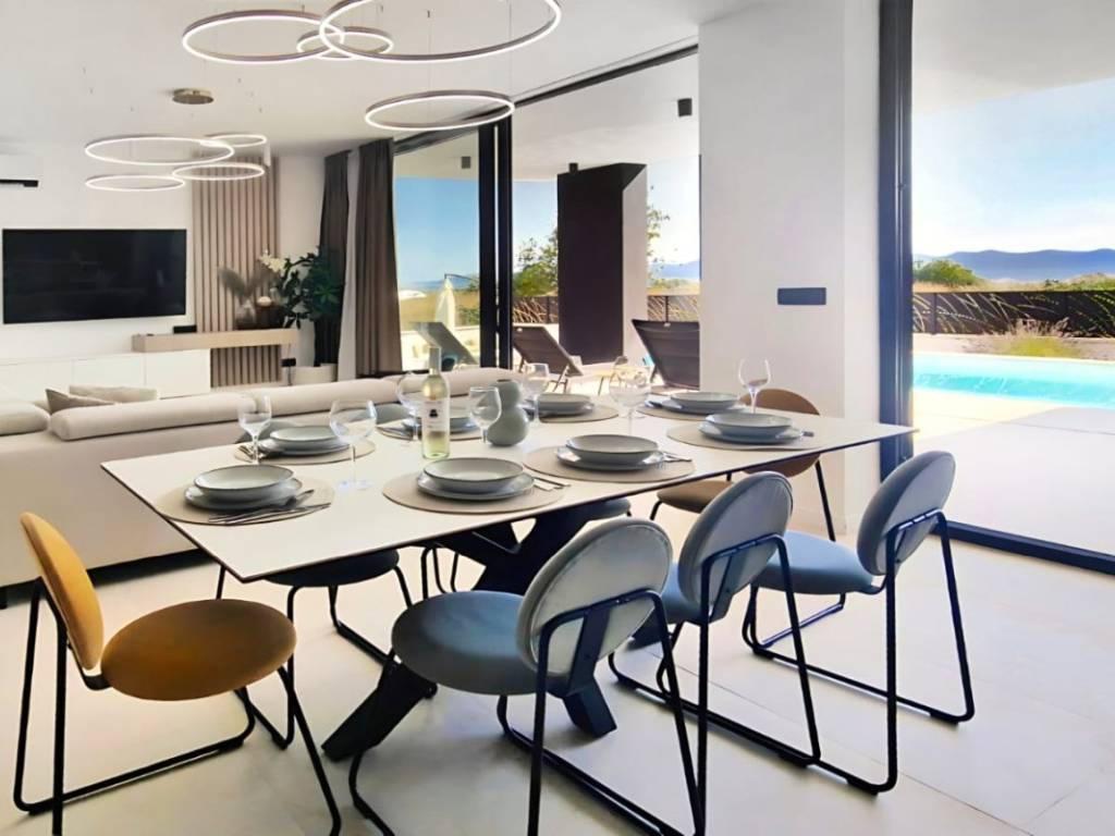 With its 239 m2 of living space, it extends over two floors. On the ground floor there is an open space with a kitchen, dining room and living room. The first floor of the villa offers three air-conditioned bedrooms, each with its own closet and TV, while the master bedroom has a spacious walk-in wardrobe.