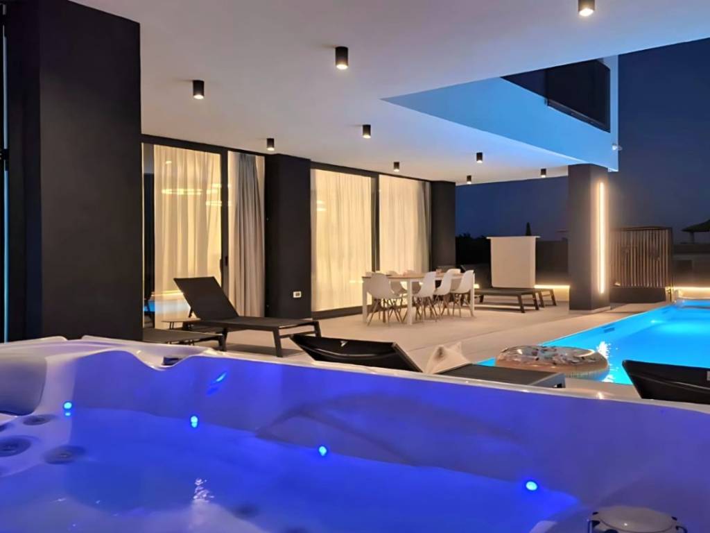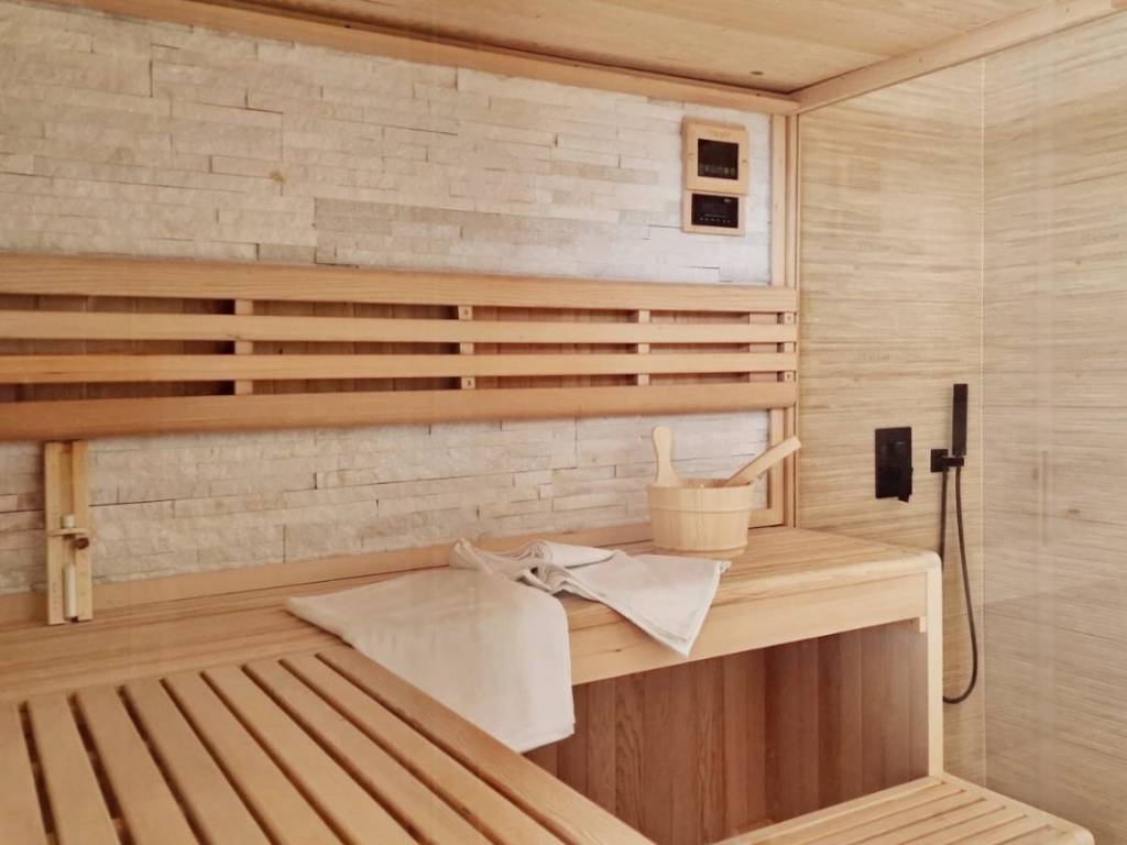 The house is ideal for a family vacation, because in addition to a spacious yard with a pool on the ground floor, it offers a jacuzzi and a sauna.