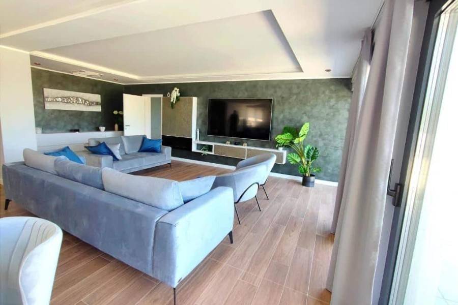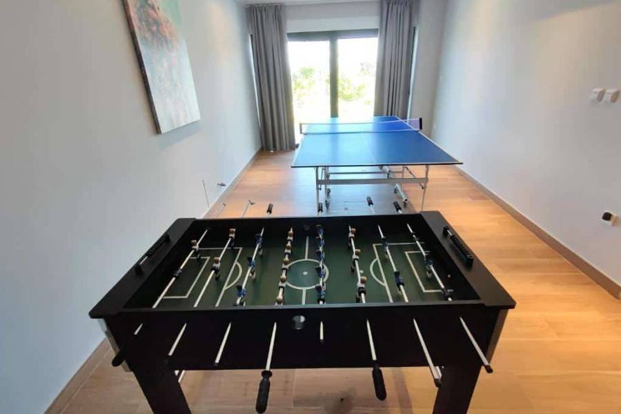 On the first floor there are five bedrooms, each with its own bathroom and access to a shared terrace, and a laundry room. The villa also has a roof terrace with a sea view.