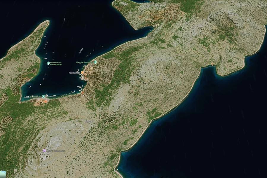 Samo 2 km od poznate ACI marine Žut i renomiranog restorana i glampinga Festa, parcela je jedinstveno pozicionirana za nautički turizam i turizam temeljen na prirodi. Nudi 60 m sjeverne obale i 150 m južne, idealne za pontone i pristup vodenim sportovima.