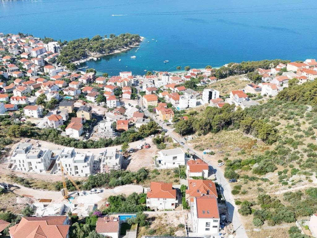 Zemljište je pravilnog kockastog oblika i nalazi se u Trogiru. Veličina zemljišta je 451 m, a nalazi se u mješovitoj zoni. Pored parcele se nalazi javni pristupni put. Sva potrebna infrastruktura se nalazi u neposrednoj blizini zemljišta. Postoji pravomoćna građevinska dozvola za izgradnju vile na tri etaže sa sveukupno 4 spavaće sobe. Imat će oko 200 m, a od dodatnog sadržaja ističu se vrt, bazen i prostrana terasa s pogledom na more.