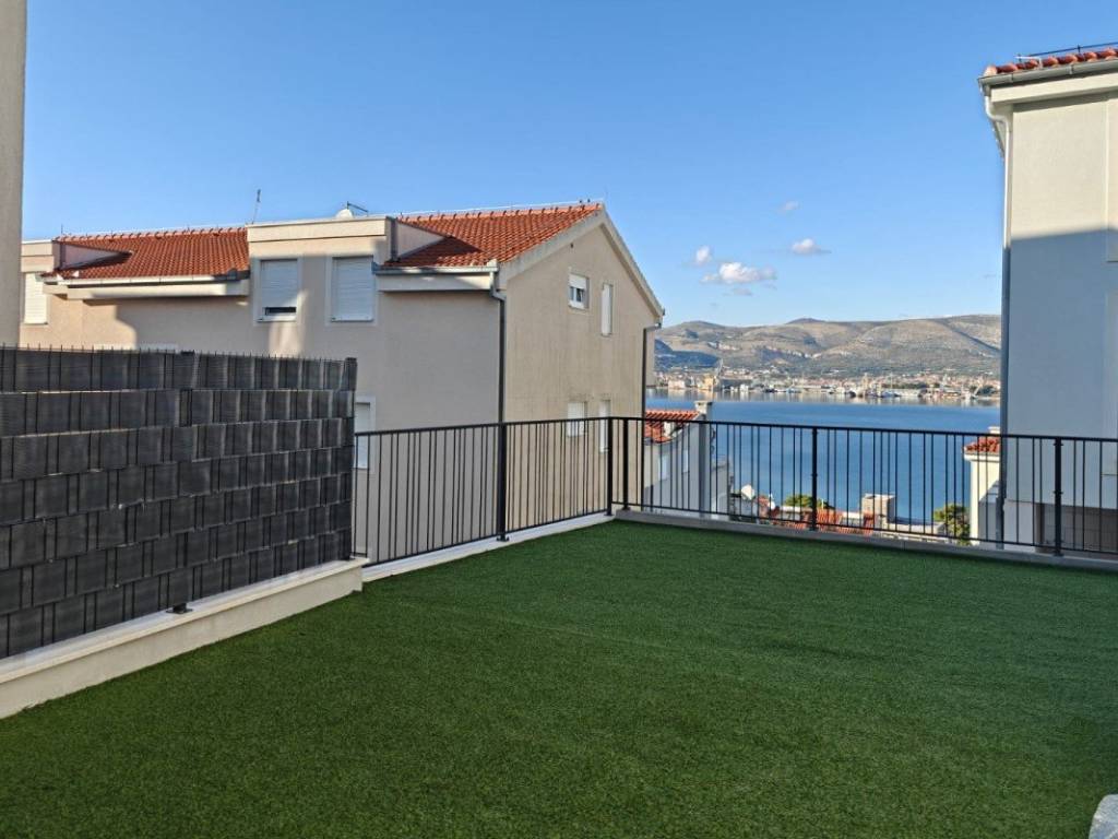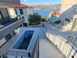 A luxurious apartment with a pool and garden in Okrug Gornji is for sale, with a partial sea view. It is in a great location, near the sea, with direct access to the beach. The apartment is north oriented and has its own private entrance.