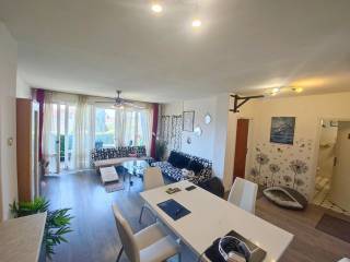 In essence, this is a comfortable two-bedroom apartment with an area of 72m2. South-oriented with large glass walls in the living room and bedroom. The apartment has an open view (partially of the sea), is airy and bright. It consists of an open-concept living room with kitchen and dining room, two spacious bedrooms, a loggia, anteroom and bathroom.