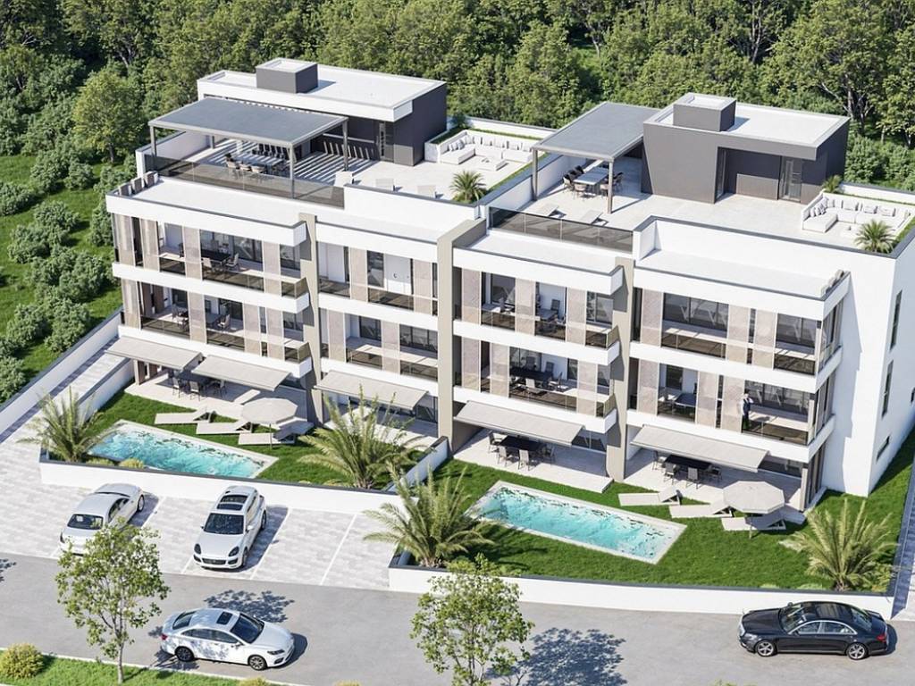 A building in the first row to the sea, with an excellent micro and macro location and the materials used are of extremely high quality and class with underfloor heating and a heat pump throughout the building, Hansgrohe and Villeroy and Boch sanitary ware, schuco stop sol carpentry 268 cm high, security and fire doors with code entry, heating and cooling on wifi, a water filter for limescale purification and more.