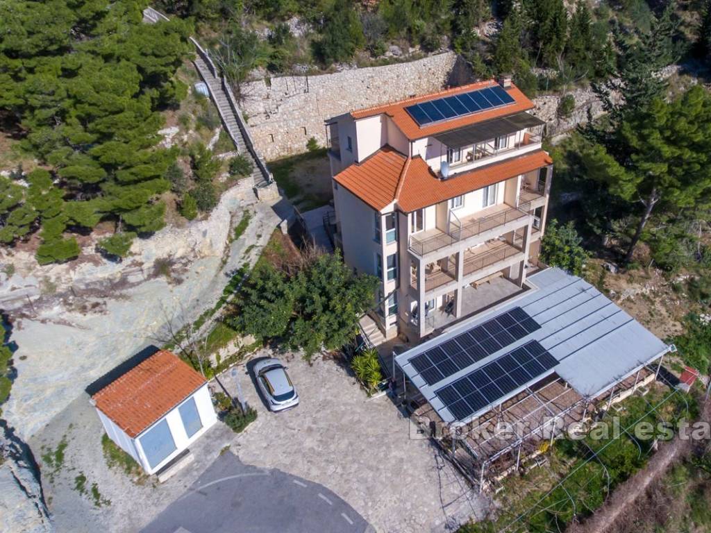 From every floor, there is an exceptional open sea view that cannot be blocked. Behind the house, there is a spacious parking area for about 20 cars, with additional parking nearby.