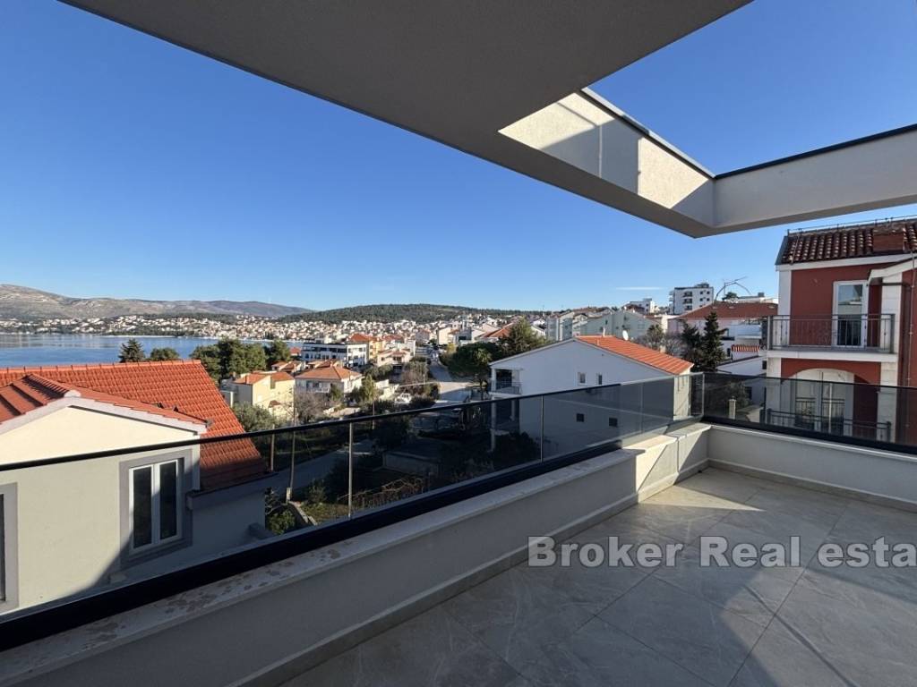 For sale is a modern penthouse with sea view, in an exceptional location in Okrug Gornji. It is located only 15 minutes walk from the town center and all the amenities that make this island an attractive place. The apartment is oriented to the northwest and is located on the second floor of a residential building with an elevator.