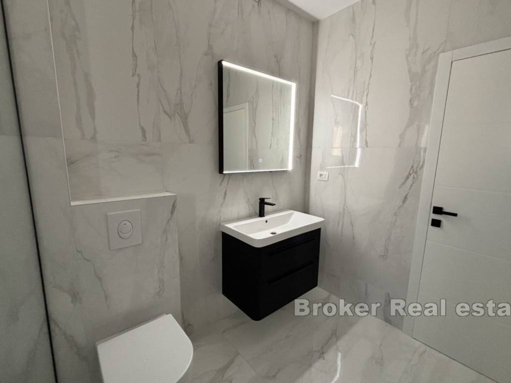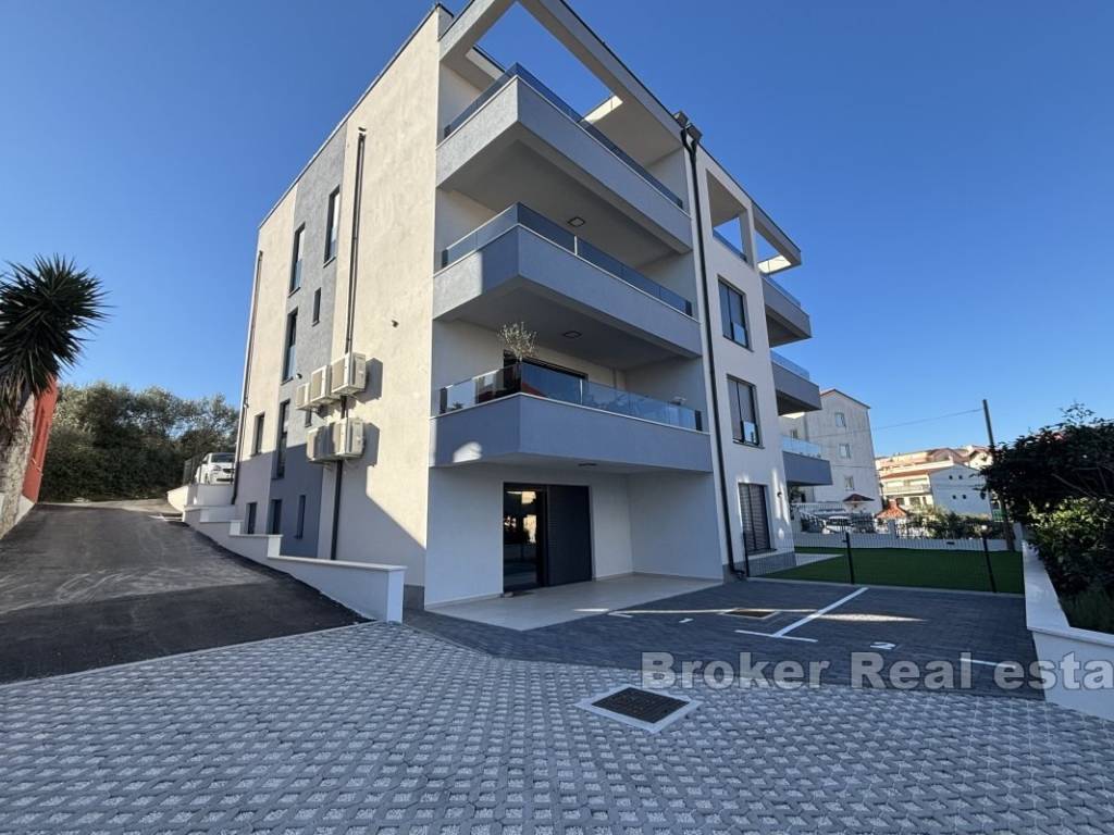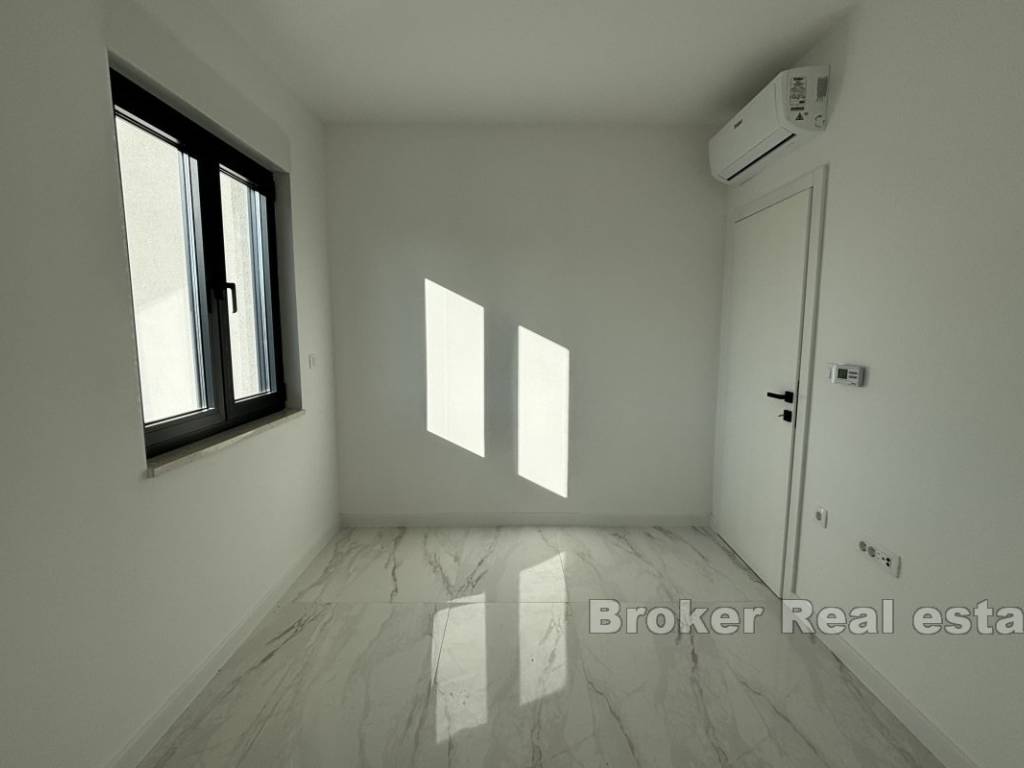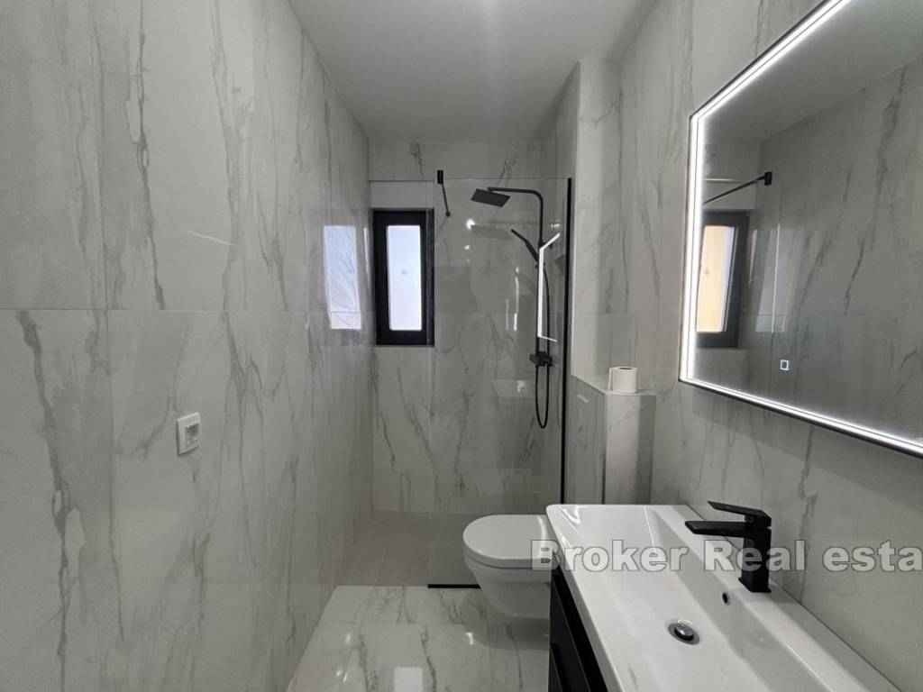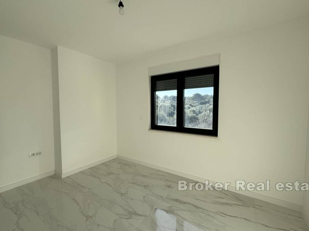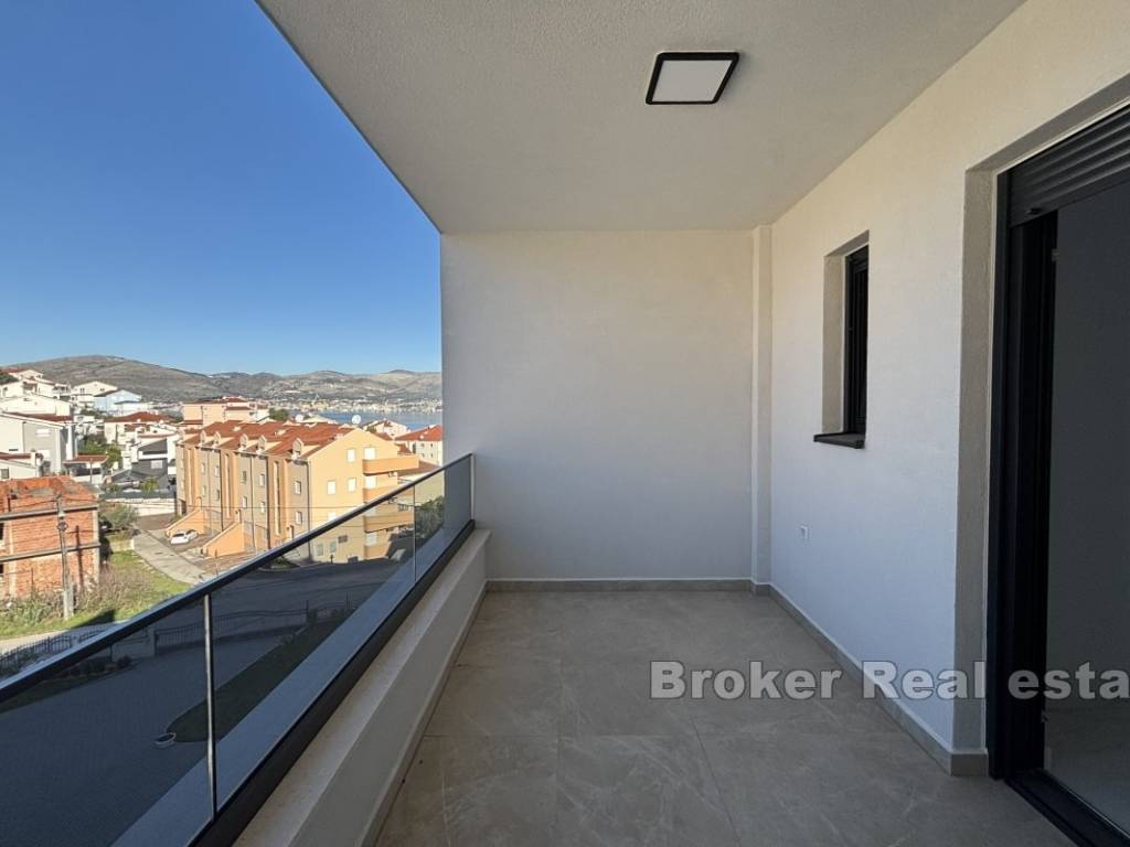 Luxurious three bedroom penthouse on the north side of the island of Čiovo, in Okrug Gornji. It has an open sea view and is located on the second floor of a residential building with an elevator.