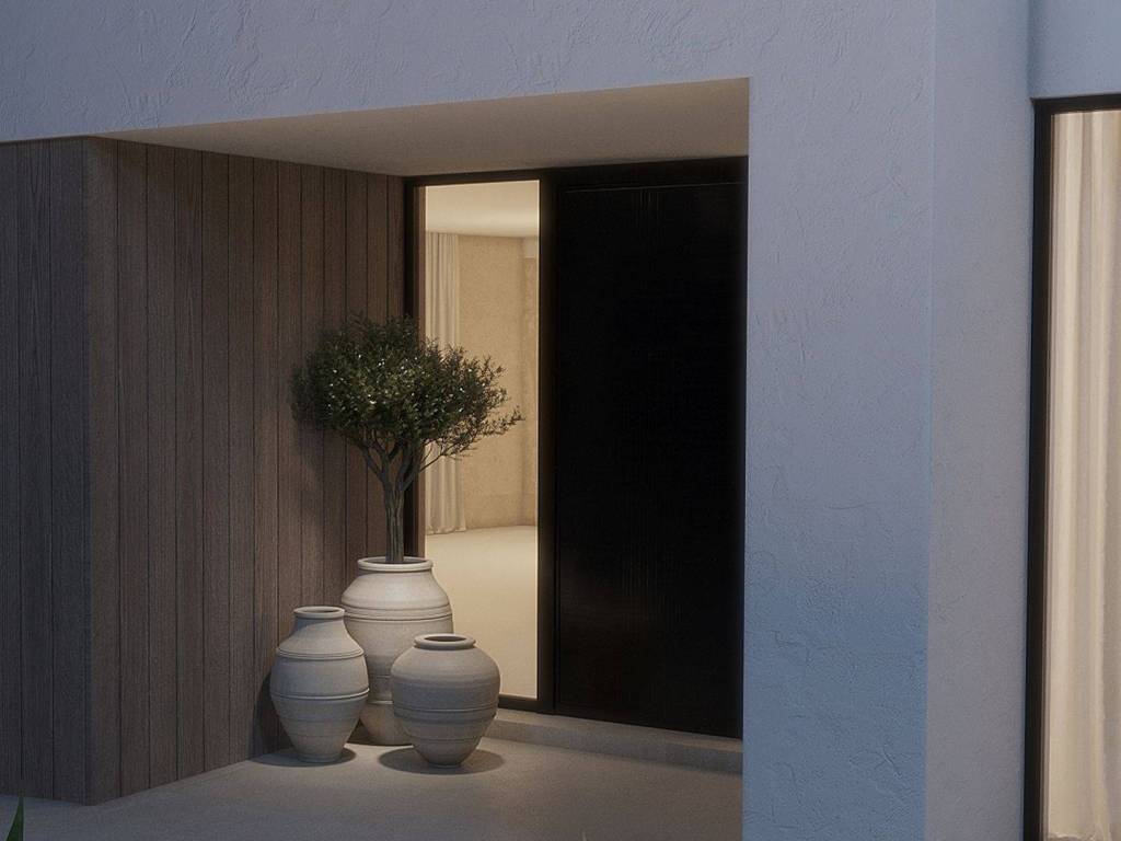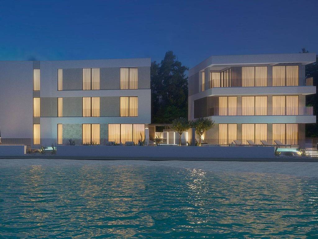A modern new villa located in a prime location, first row to the sea. The villa is in the construction phase with completed rough works, its final interior decoration is expected soon.
