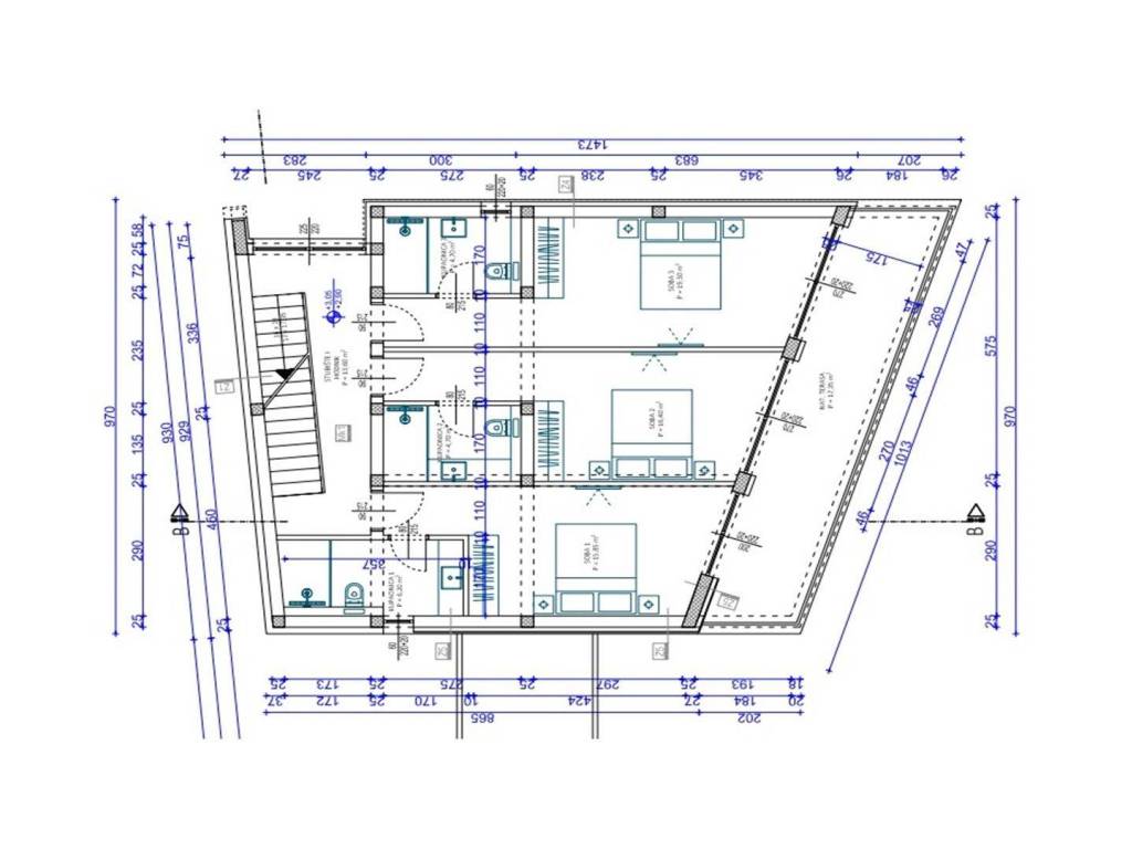 On the first floor there are 3 rooms with en suite bathrooms. All rooms have access to a terrace with an open view of the sea
