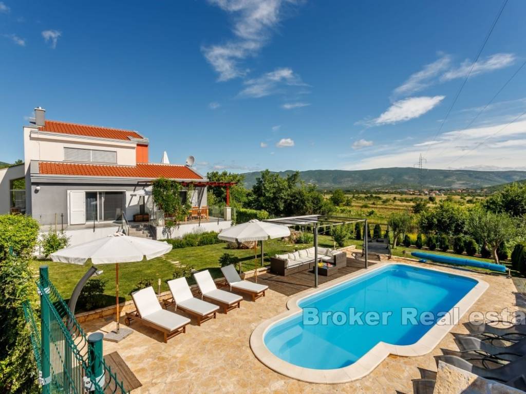 Spacious rural villa, with swimming pool, for sale, total living area of 500 m2, located on a plot of 1303 m2, in a rural area distanced 15 km from Split.