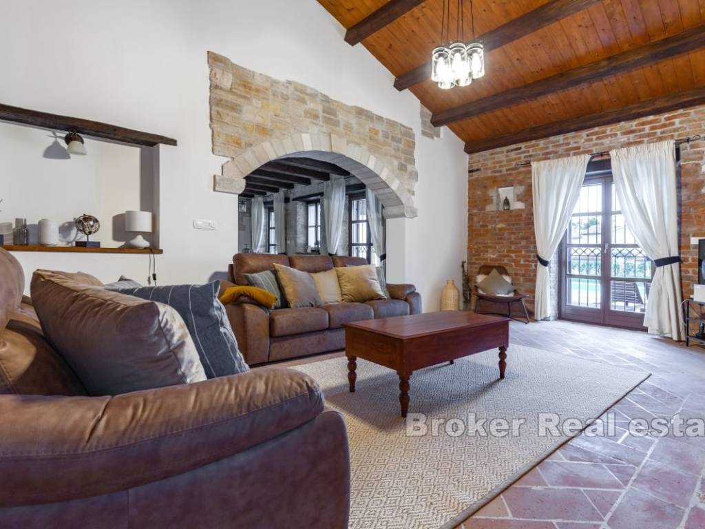 A beautiful autochthonous stone house with a swimming pool is located on a plot of 1772 m2. The total living area of 249 m2 extends over two floors.
