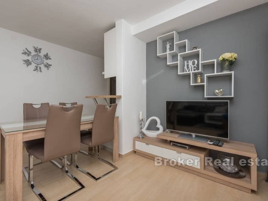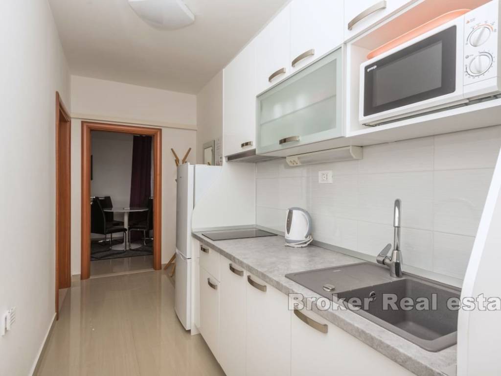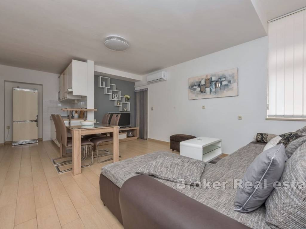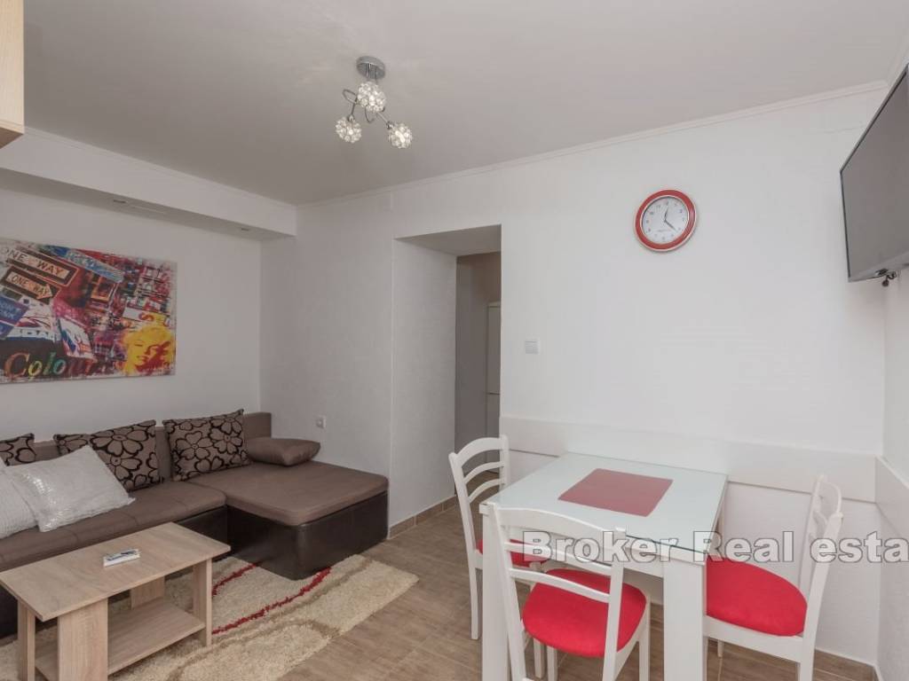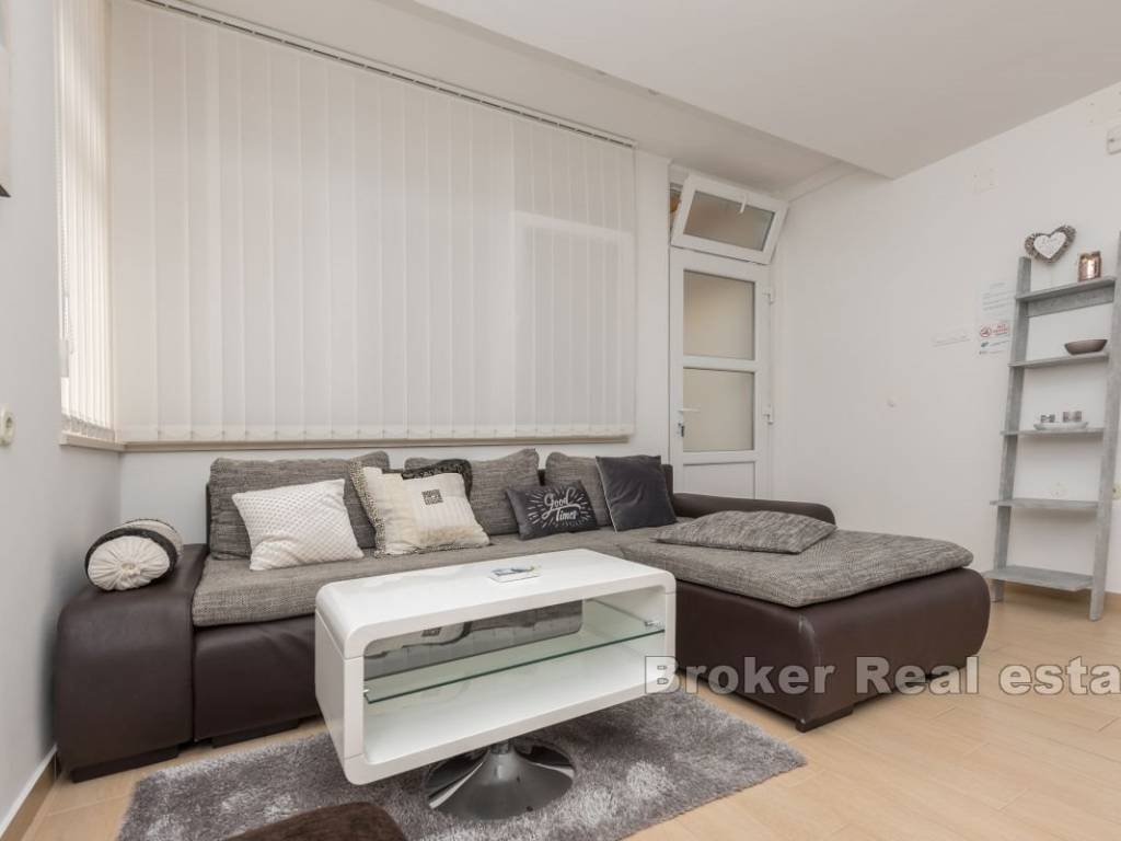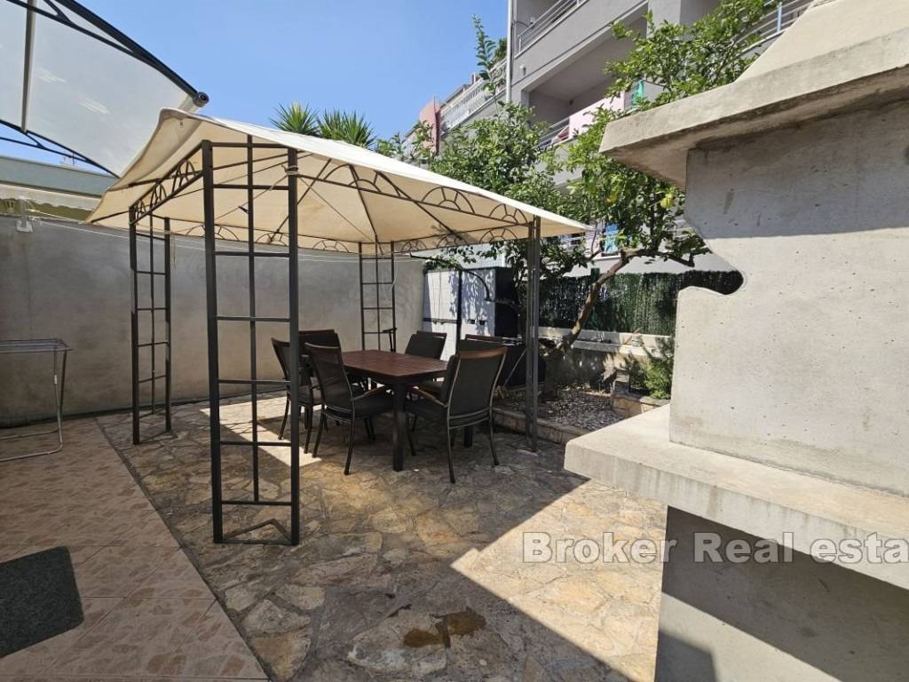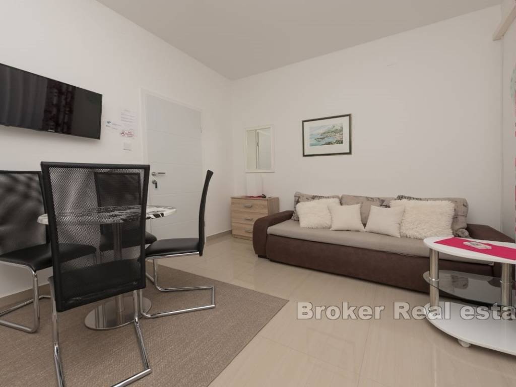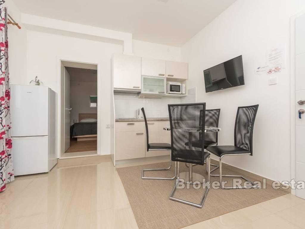 This semi-detached house with six apartment units is situated near the beach and all necessary amenities. On the ground floor, there is one two-bedroom and two one-bedroom apartments, while on the first floor, there are three one-bedroom apartments. All apartments have air conditioning in the living rooms, and five bedrooms also have their own air conditioning units. The house has parking for 4-5 cars, which is an additional advantage. The apartments are already well-established as a tourist business, providing a stable source of income and the possibility of further development. This property represents a good investment for those seeking a business opportunity in tourism or a comfortable living space with rental potential.